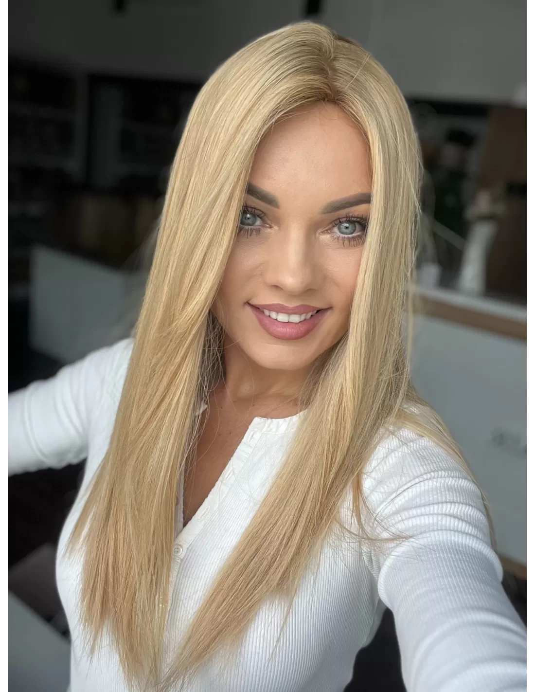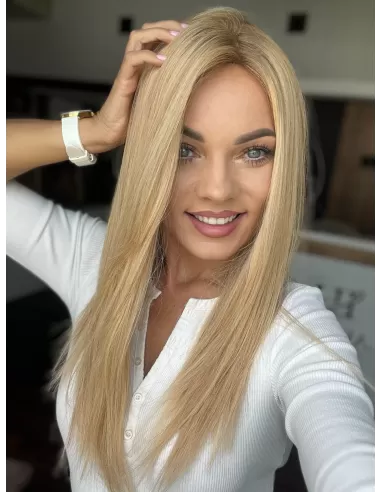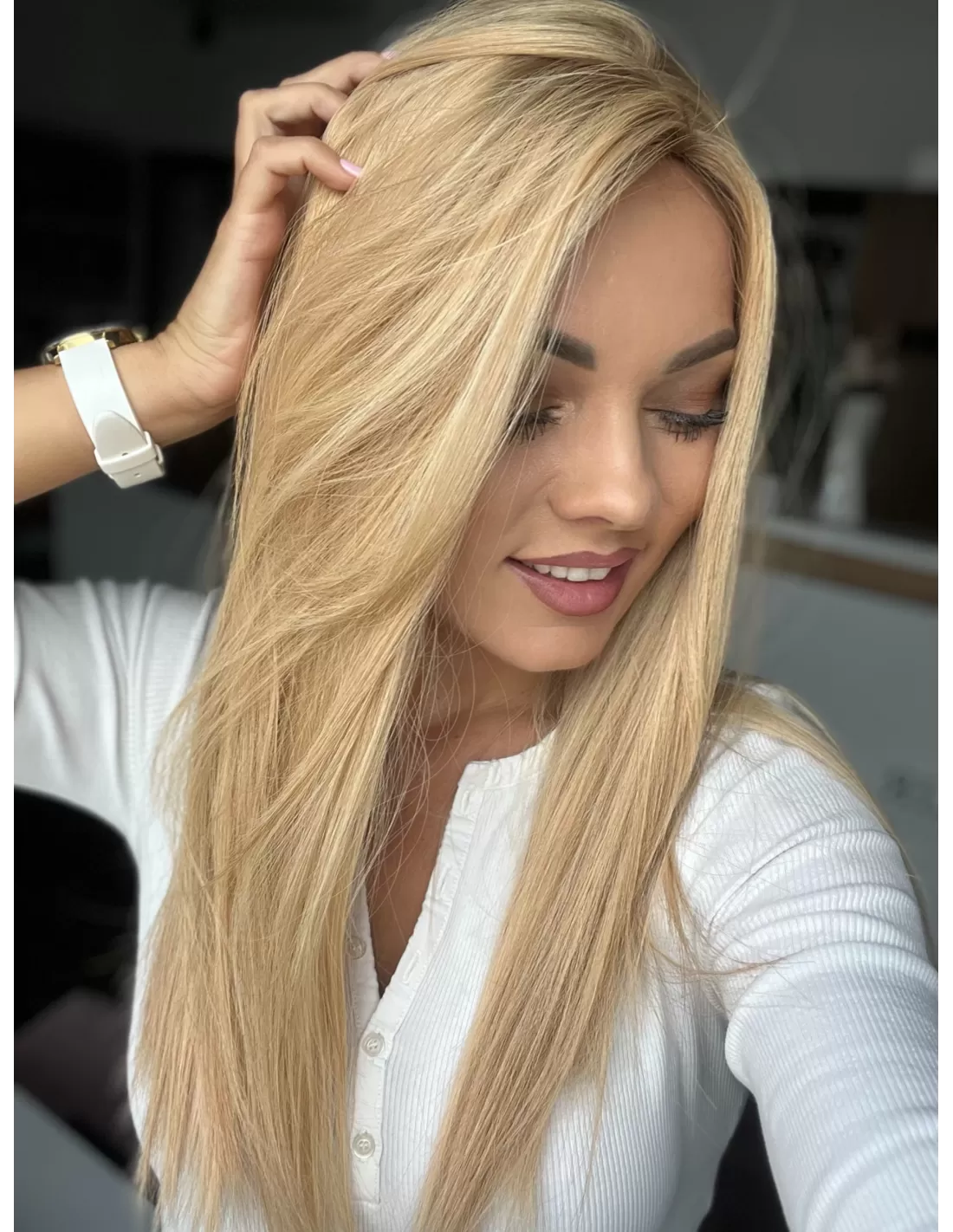 Peruka Sheila, to absolutna definicja elegancji i subtelności. Jego lśniące włosy w odcieniach słonecznego blondu promieniują ciepłem i świeżością. Delikatny kontrast odrostu w kolorze średniego blondu nadaje mu niepowtarzalny charakter. To idealny dodatek, który dodaje blasku i pewności siebie, sprawiając, że każdy dzień staje się wyjątkowy.