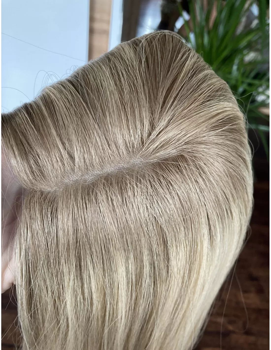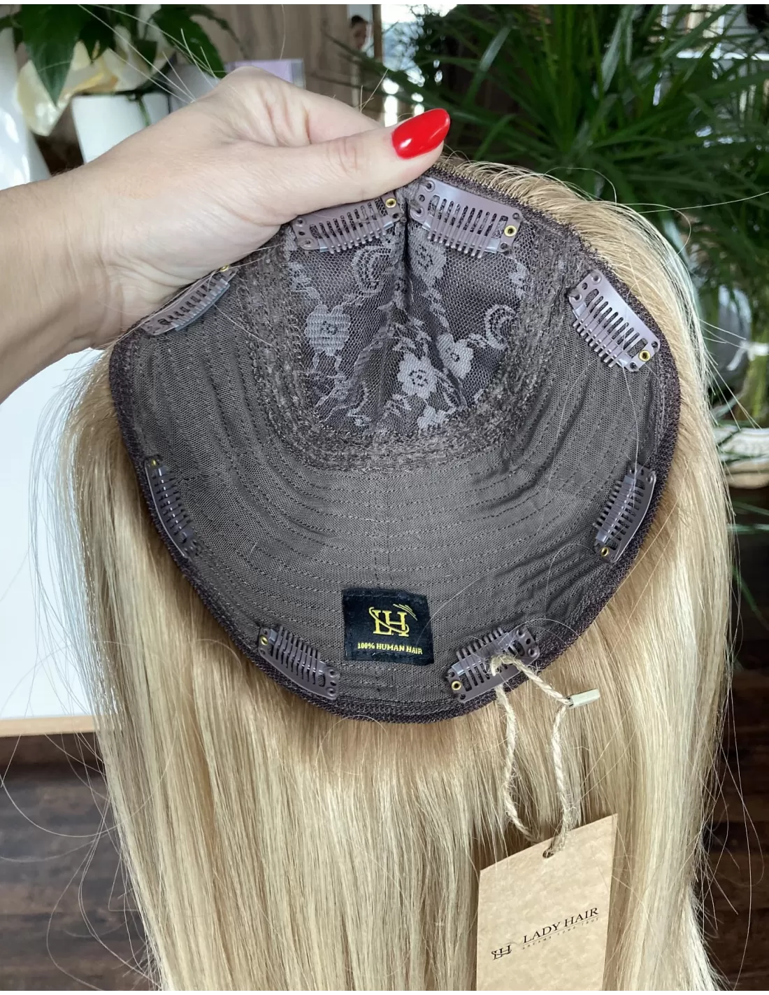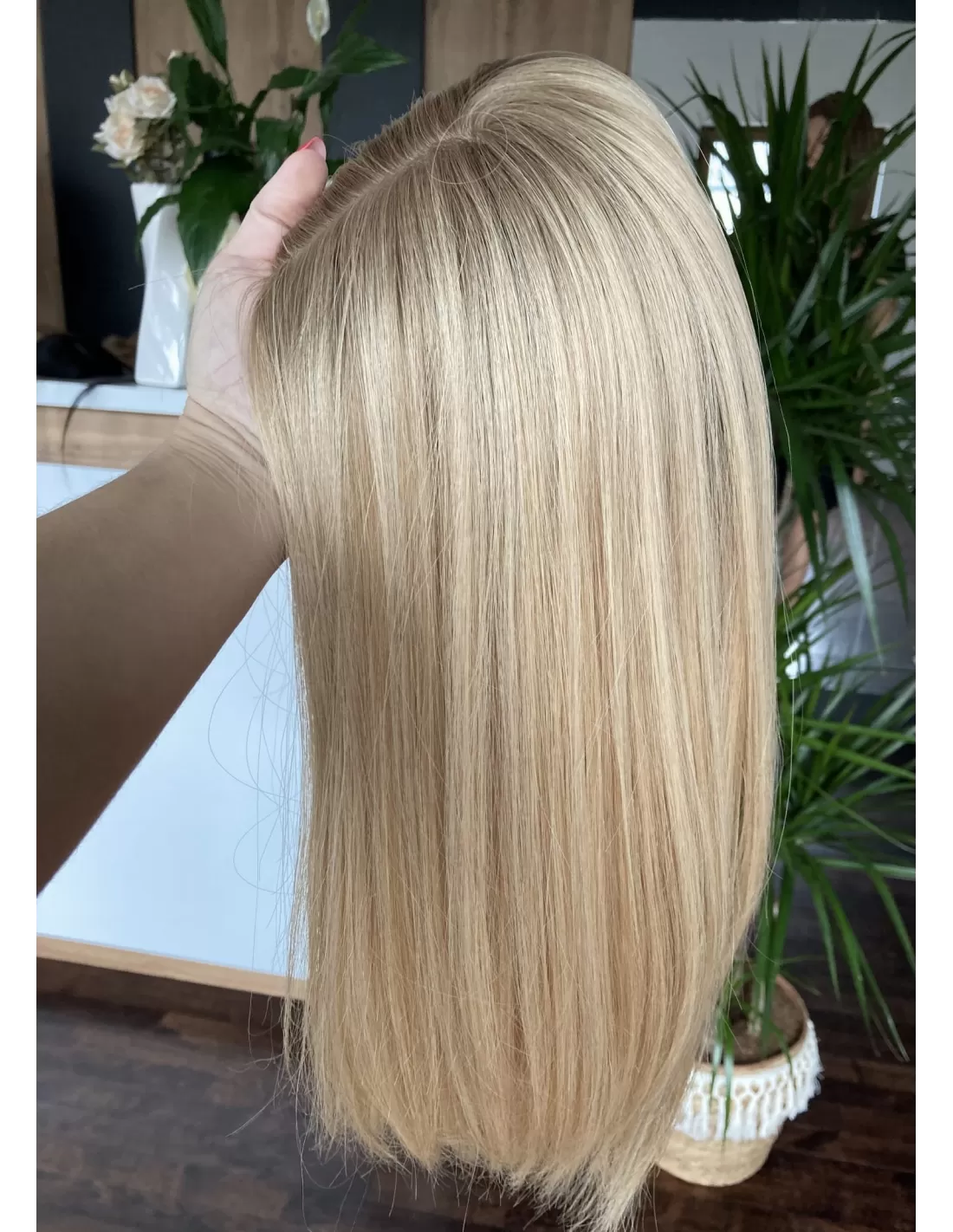 Topper z włosów naturalnych Wilma – beżowy baleyage blond z chłodnym odrostem 35 cm.