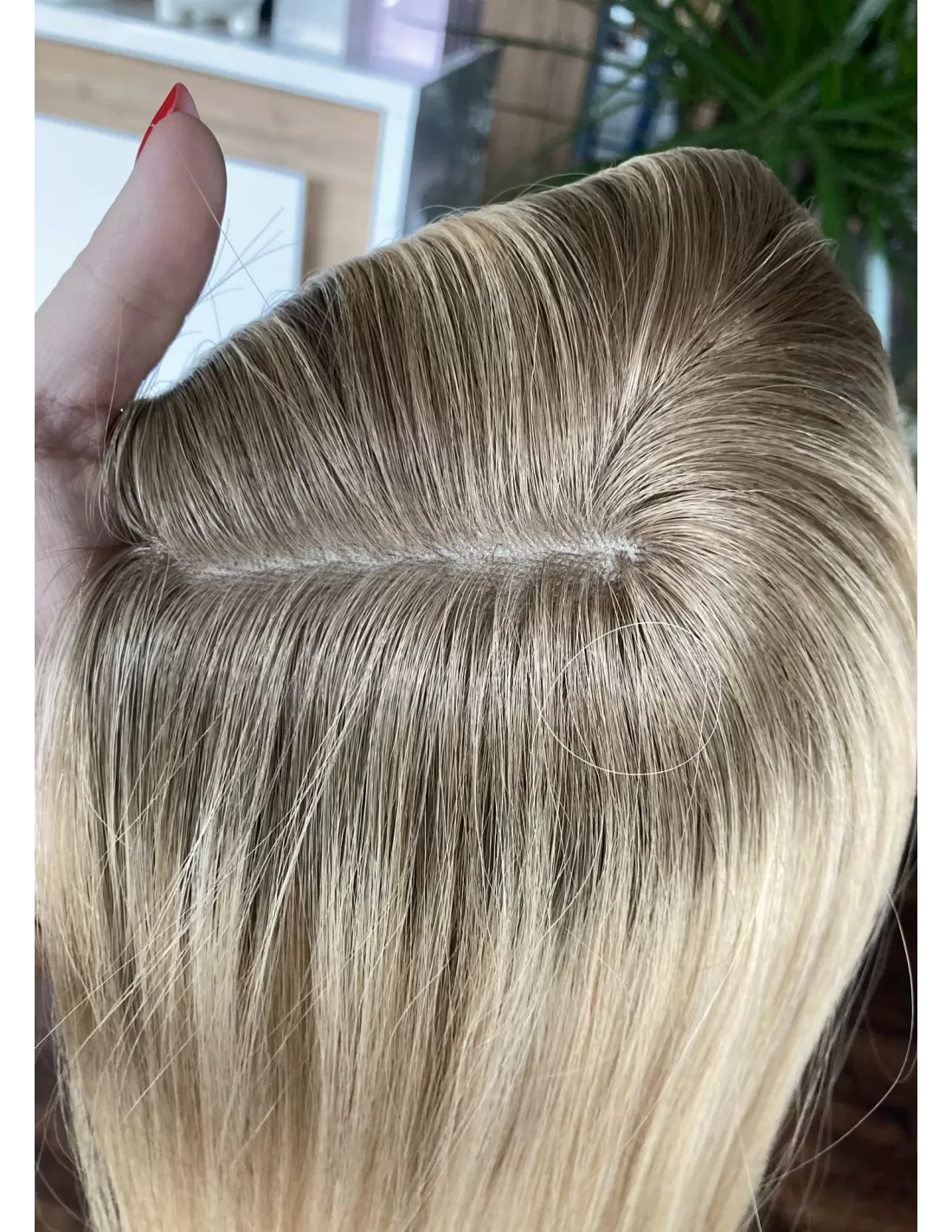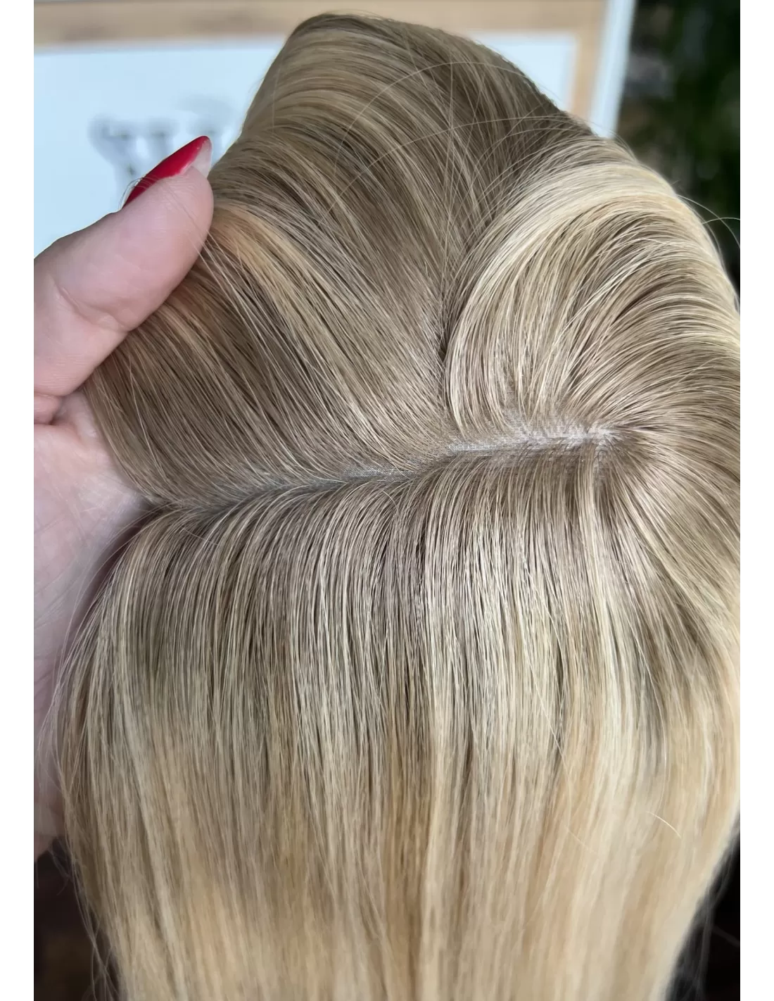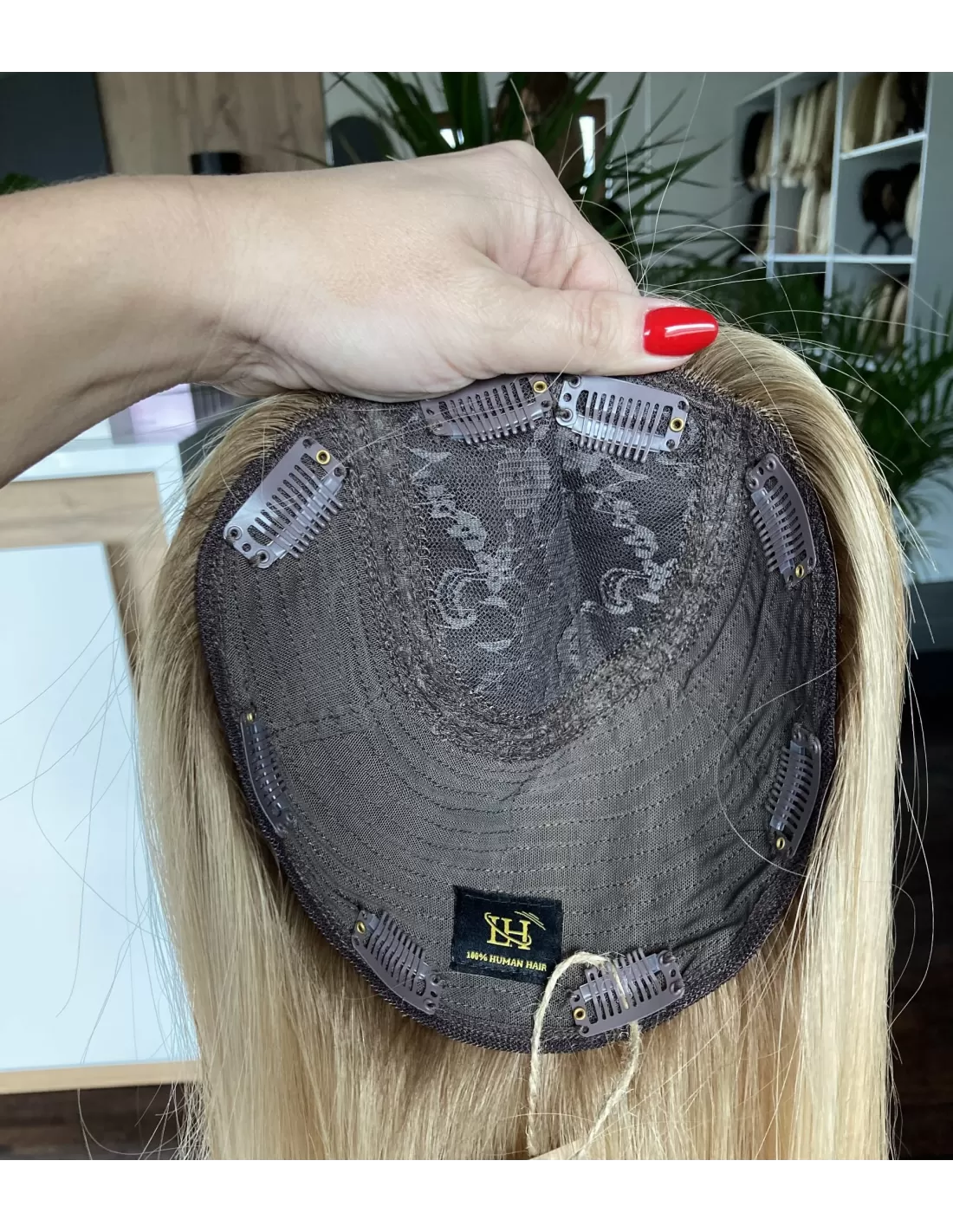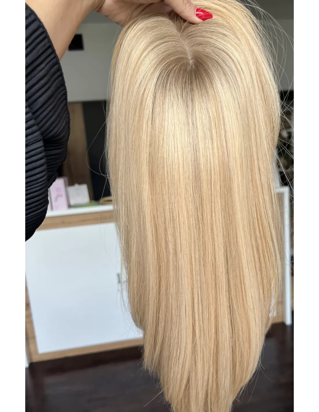 Topper z włosów naturalnych Sheila – blond 35 cm z odrostem