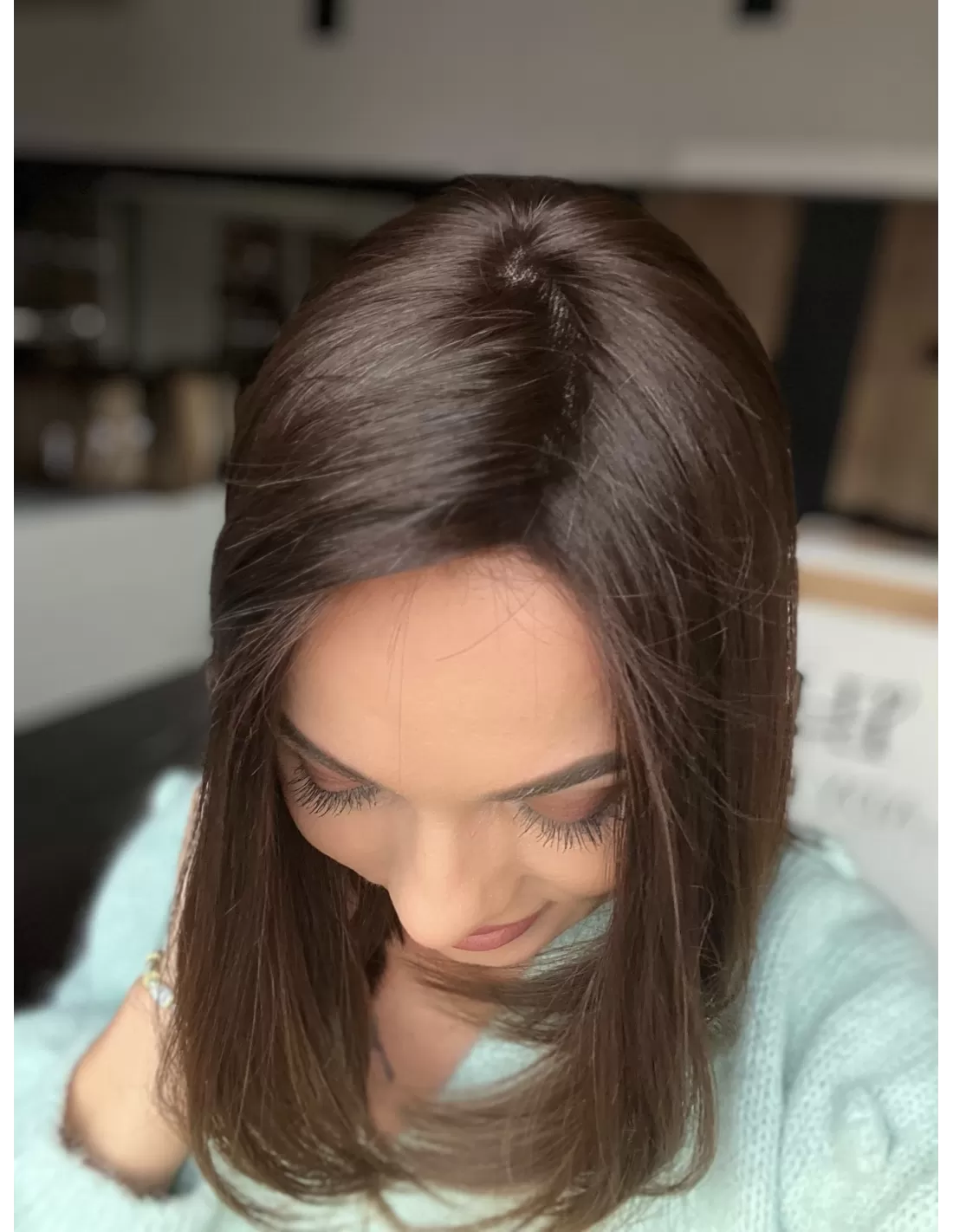 Kolor toppera "Joni" to piękne ombre -połączenie czekoladowego brązu z delikatnym i subtelnym przejściem w jaśniejsze odcienie brązu