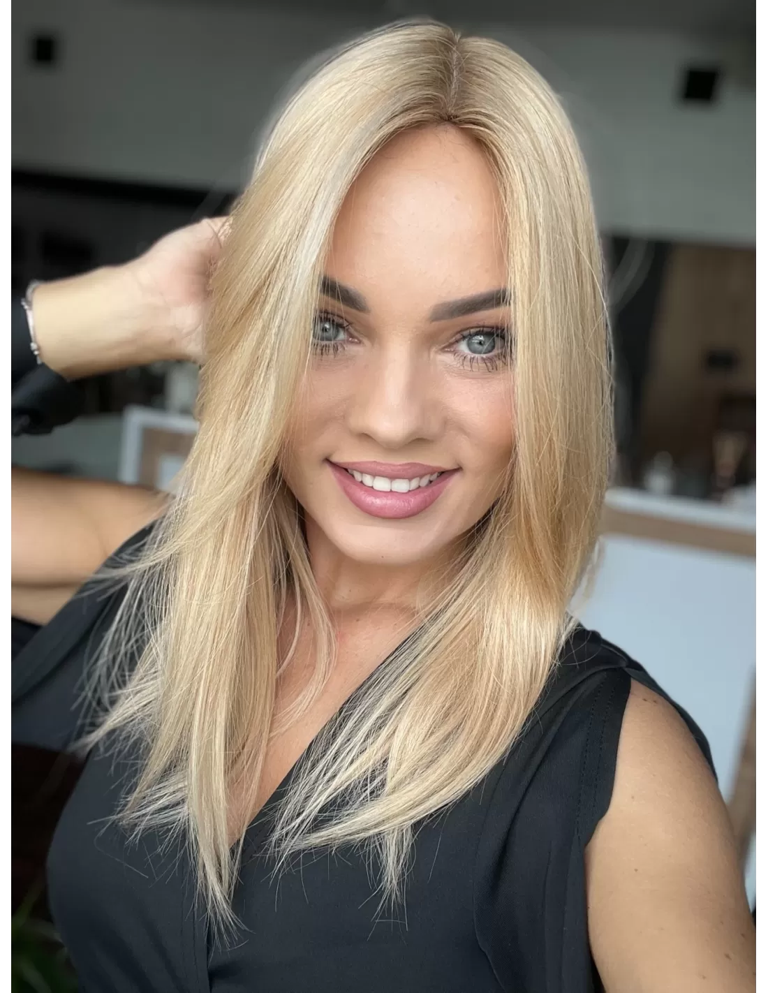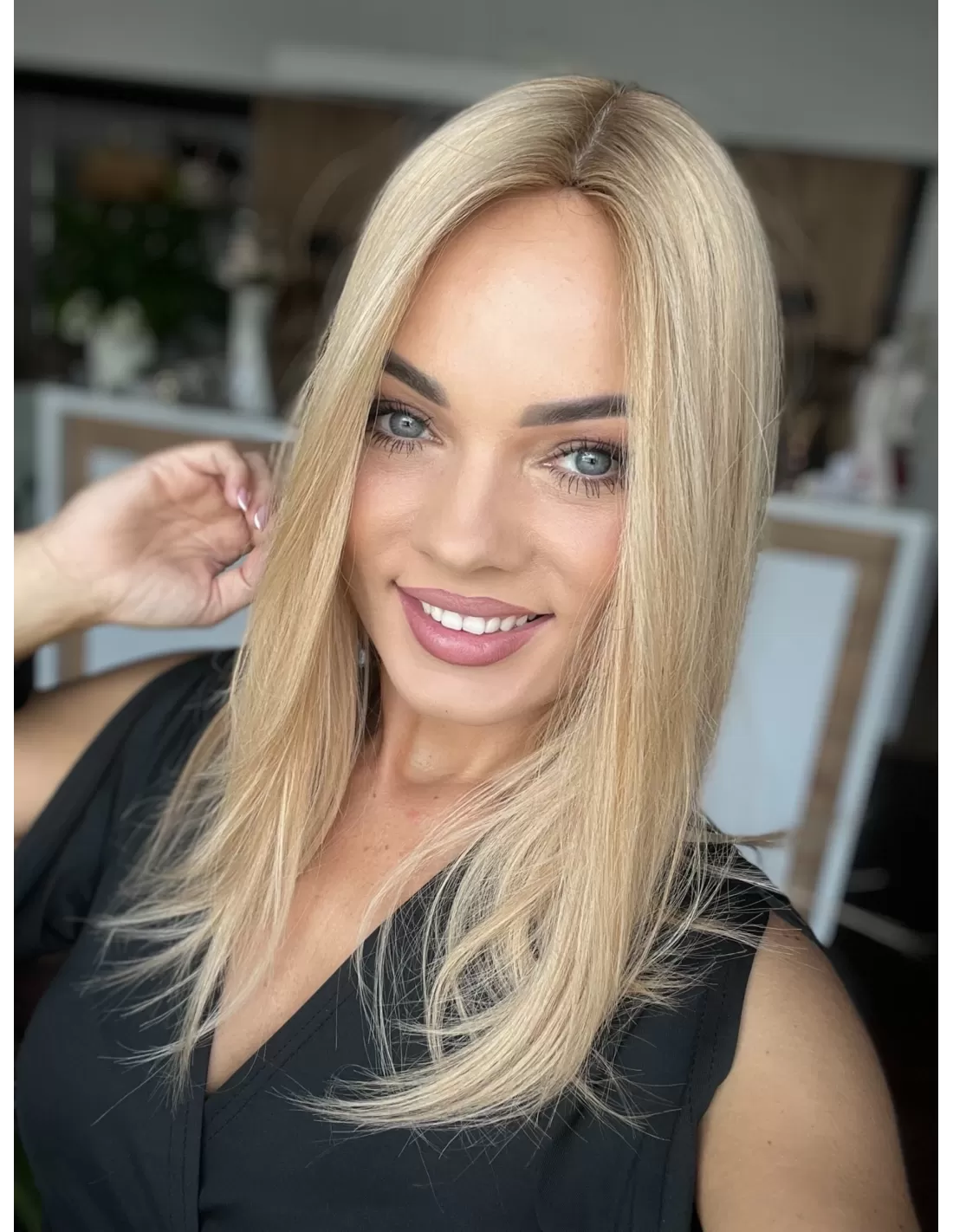Mikroskóra dla Naturalnego Efektu: Mikroskóra imituje ludzką skórę , tworząc wrażenie, że włosy wyrastają prosto z Twojej głowy. To detale, które sprawiają, że noszenie tego toppera jest niezwykle komfortowe i wygląda niezwykle autentycznie.