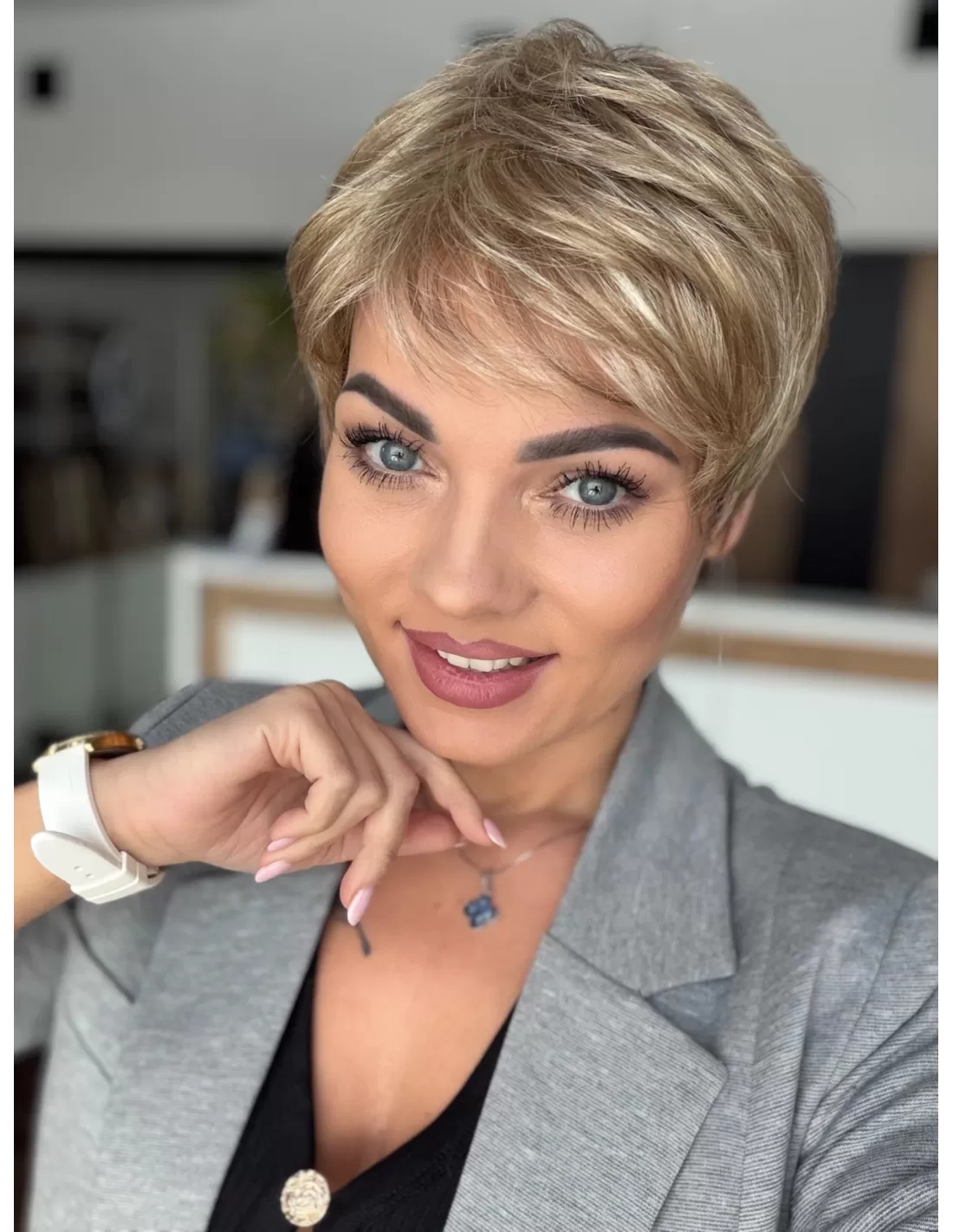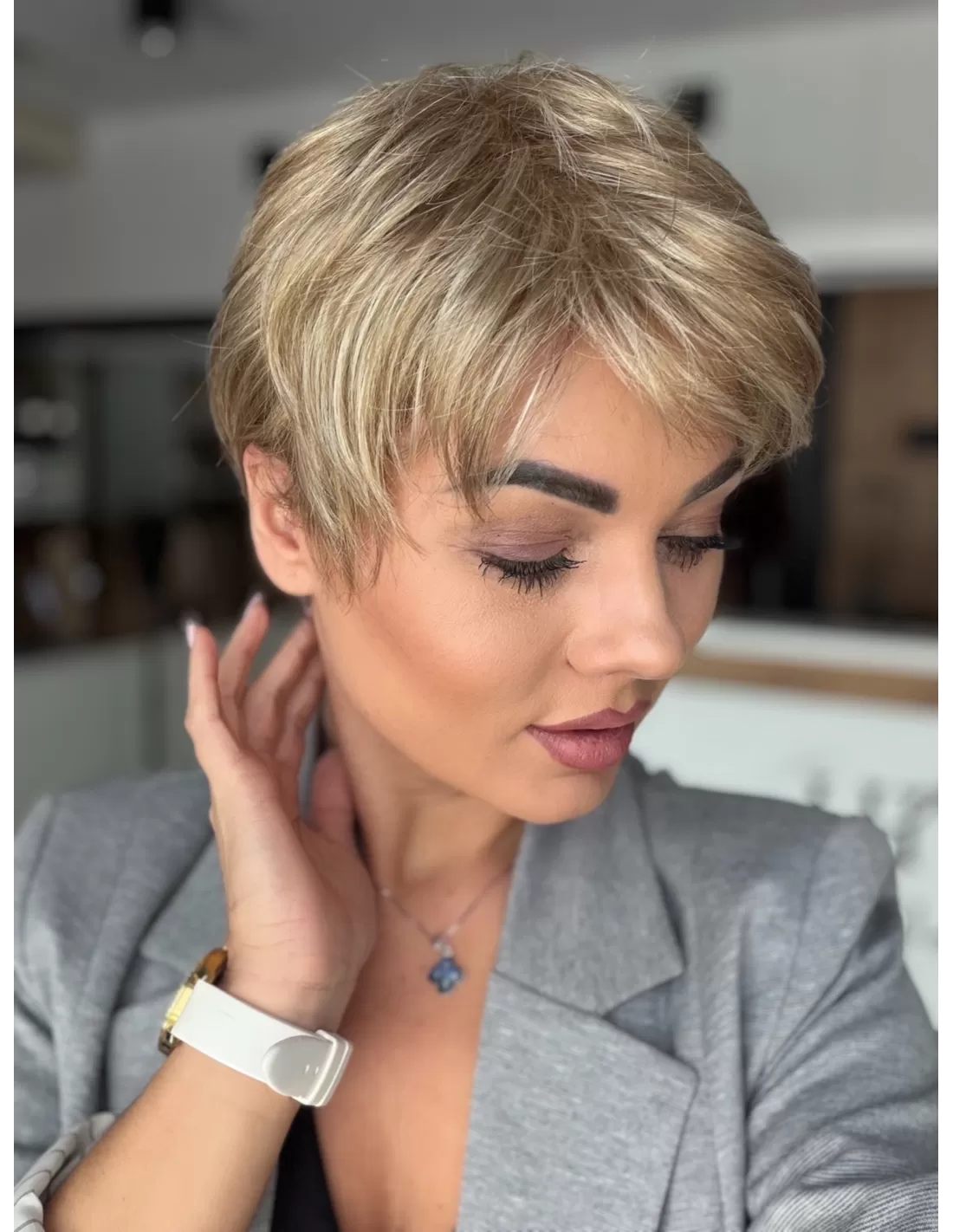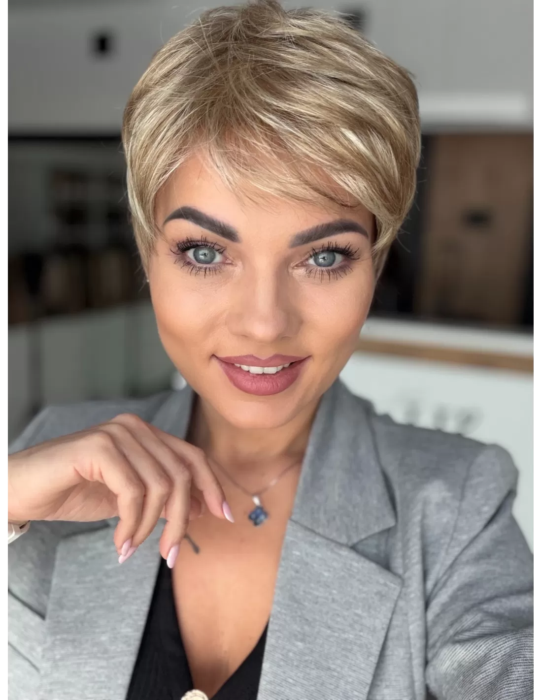 Włosy w peruce są plastyczne dzięki czemu  możesz je dowolnie układać i zmieniać przedziałek, tworząc przy tym różnorodne fryzury.
