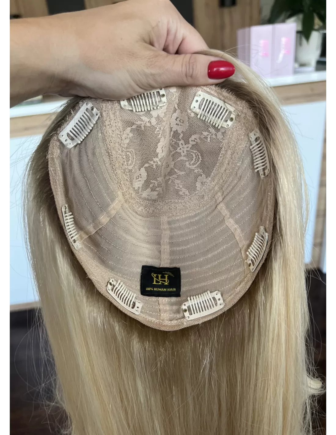 Wykonany z 100% naturalnych włosów europejskich premium, topper Kejsi zachwyca miękkością, gładkością i naturalnym ruchem. Długie pasma układają się swobodnie, tworząc efekt zdrowej, luksusowej fryzury.