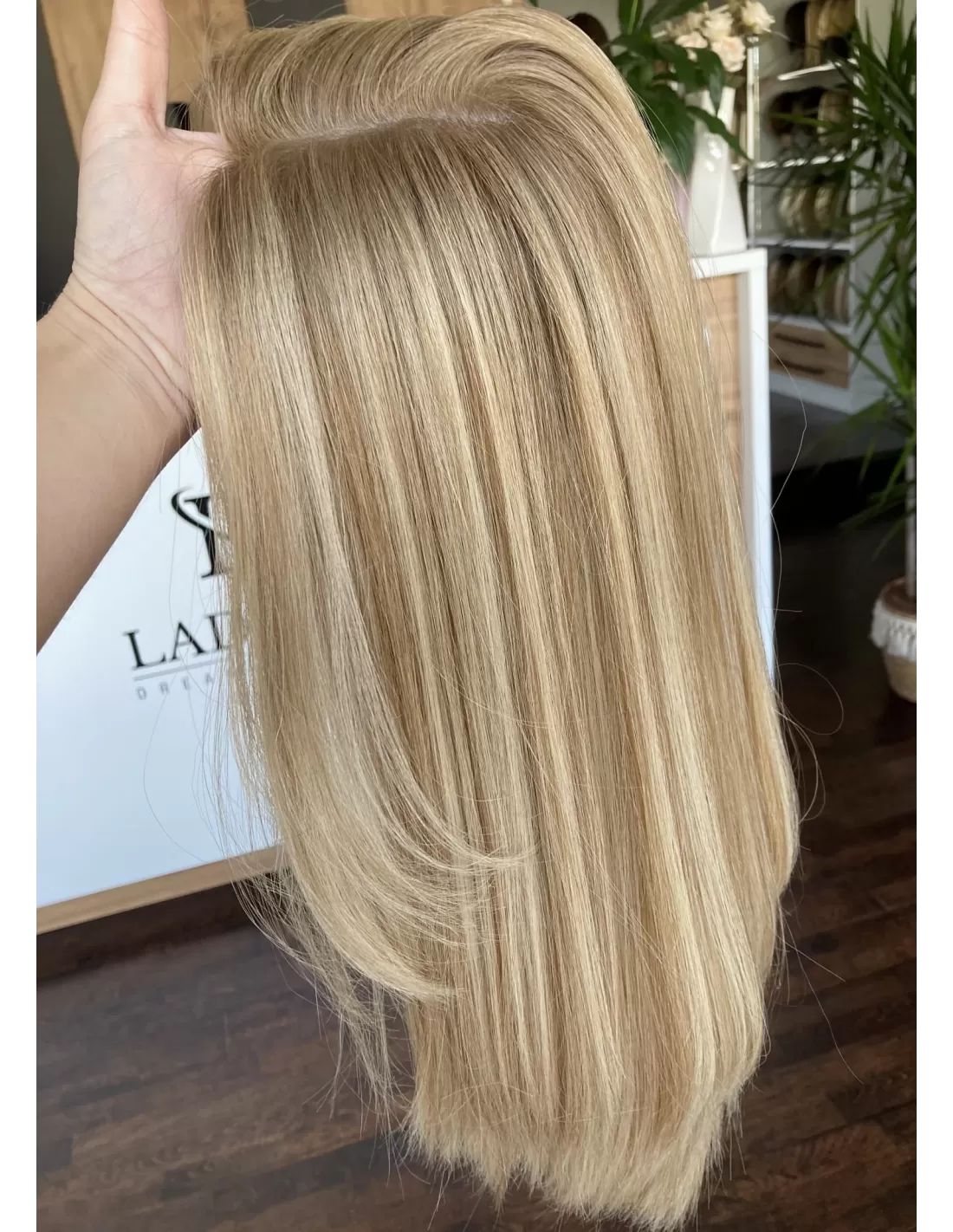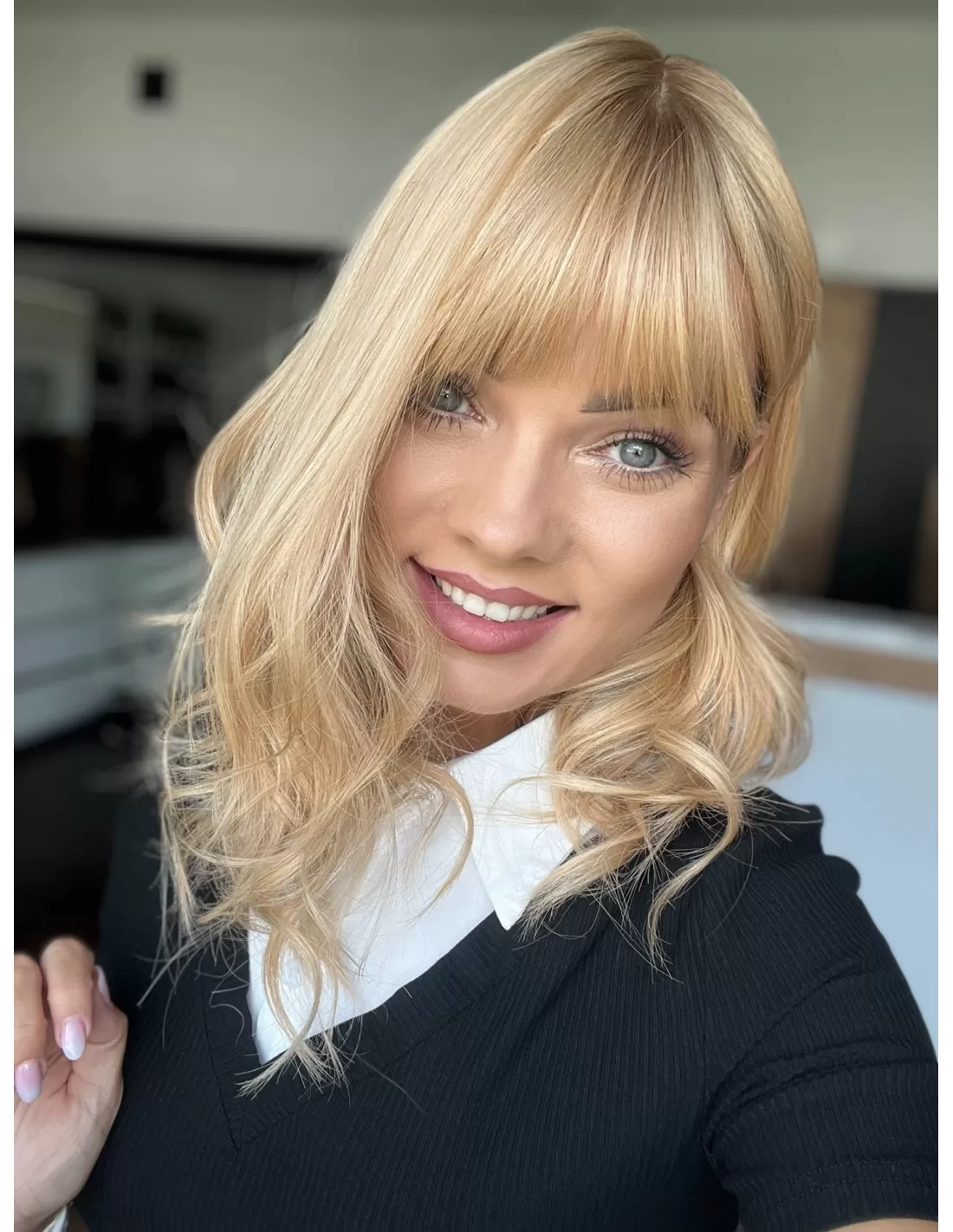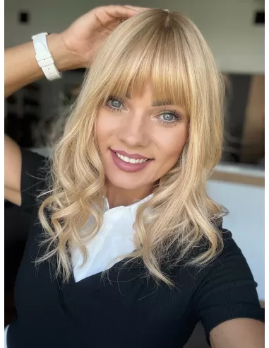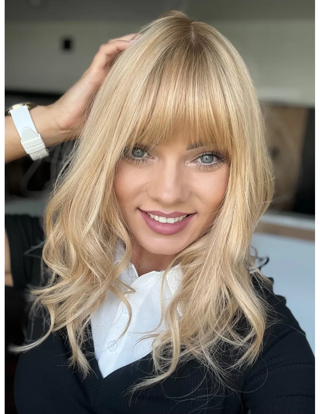 Poznaj Sheilę – absolutną definicję elegancji i subtelności. Jej lśniące włosy w odcieniach słonecznego blondu promieniują ciepłem i świeżością, a delikatny kontrast odrostu w kolorze średniego blondu nadaje fryzurze niepowtarzalny charakter. To topper, który doda blasku i pewności siebie, sprawiając, że każdy dzień stanie się wyjątkowy.