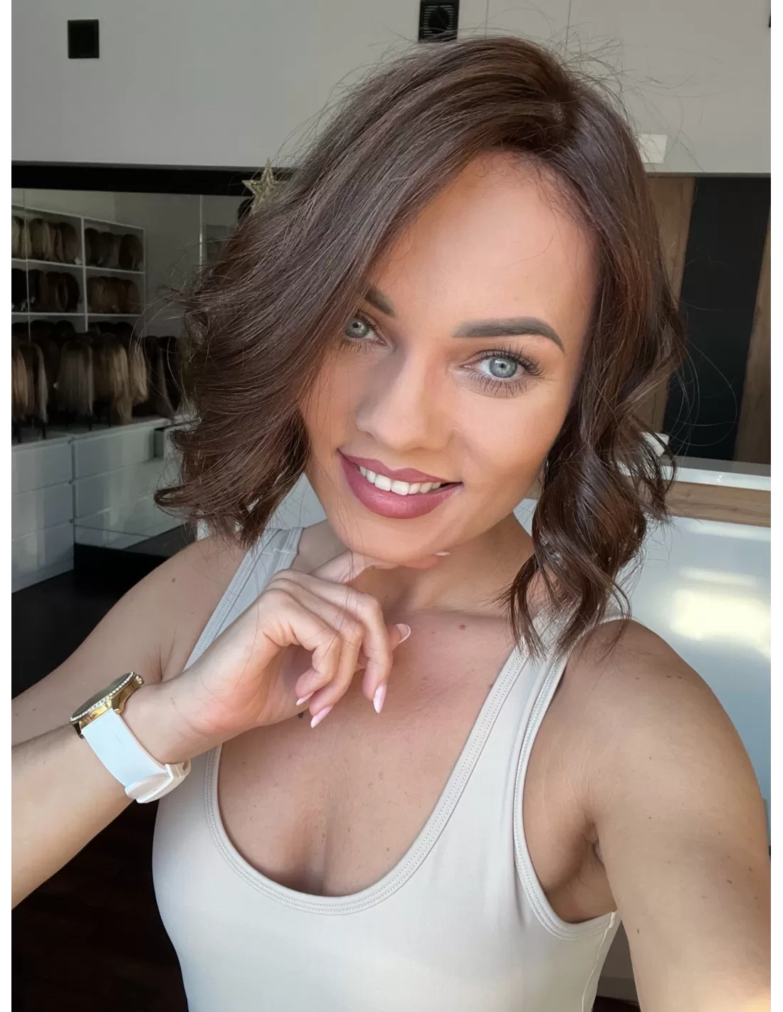 Kolor toppera "Joni" to piękne odcienie czekoladowegoo brązu, które mogą doskonale współgrać z wieloma rodzajami włosów i odcieniami skóry.