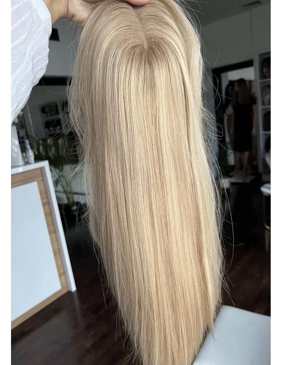 Elastyczna baza z mikroskórą o wymiarach 20 x 20 cm perfekcyjnie imituje naturalną skórę głowy – włosy sprawiają wrażenie, jakby wyrastały bezpośrednio z niej. To gwarancja autentycznego efektu, estetyki klasy premium oraz komfortu noszenia przez cały dzień.