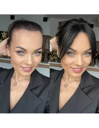 Lady HairGrzywka Hollywood z włosów naturalnych to doskonałe rozwiązanie dla kobiet pragnących dodać sobie uroku i stylu, które borykają się z problemami takimi jak mała ilość włosów do stworzenia grzywki, łysienie czy po prostu chęć odmiany . Ten niezwykle lekki dodatek jest mocowany za pomocą dwóch spinek typu clip-in, co sprawia, że jego aplikacja jest szybka i prosta, a jednocześnie stabilna.