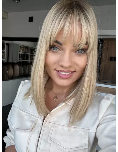 Delikatny odrost w odcieniu średniego brązu tworzy harmonijny kontrast, dzięki czemu fryzura wygląda niezwykle realistycznie i elegancko. Kolorystyka inspirowana naturalnym światłem sprawia, że włosy zyskują wielowymiarowość oraz subtelny ruch.