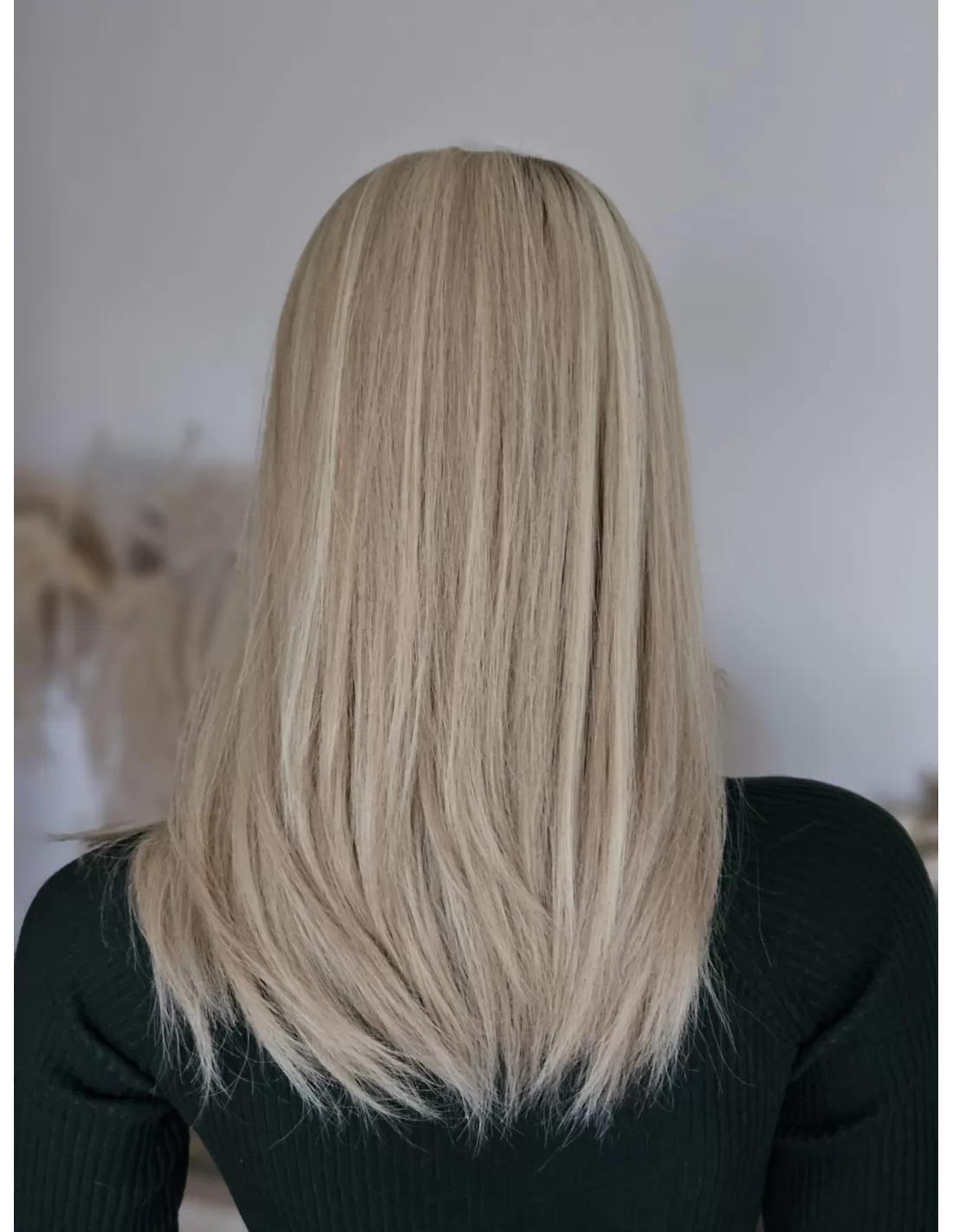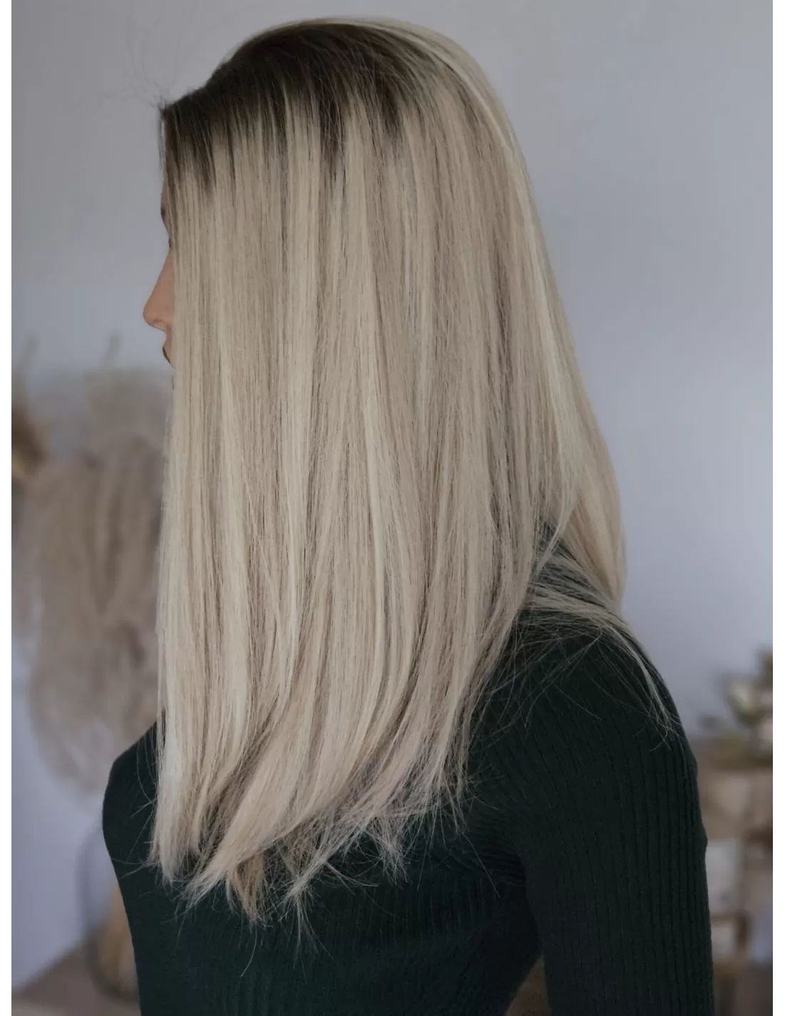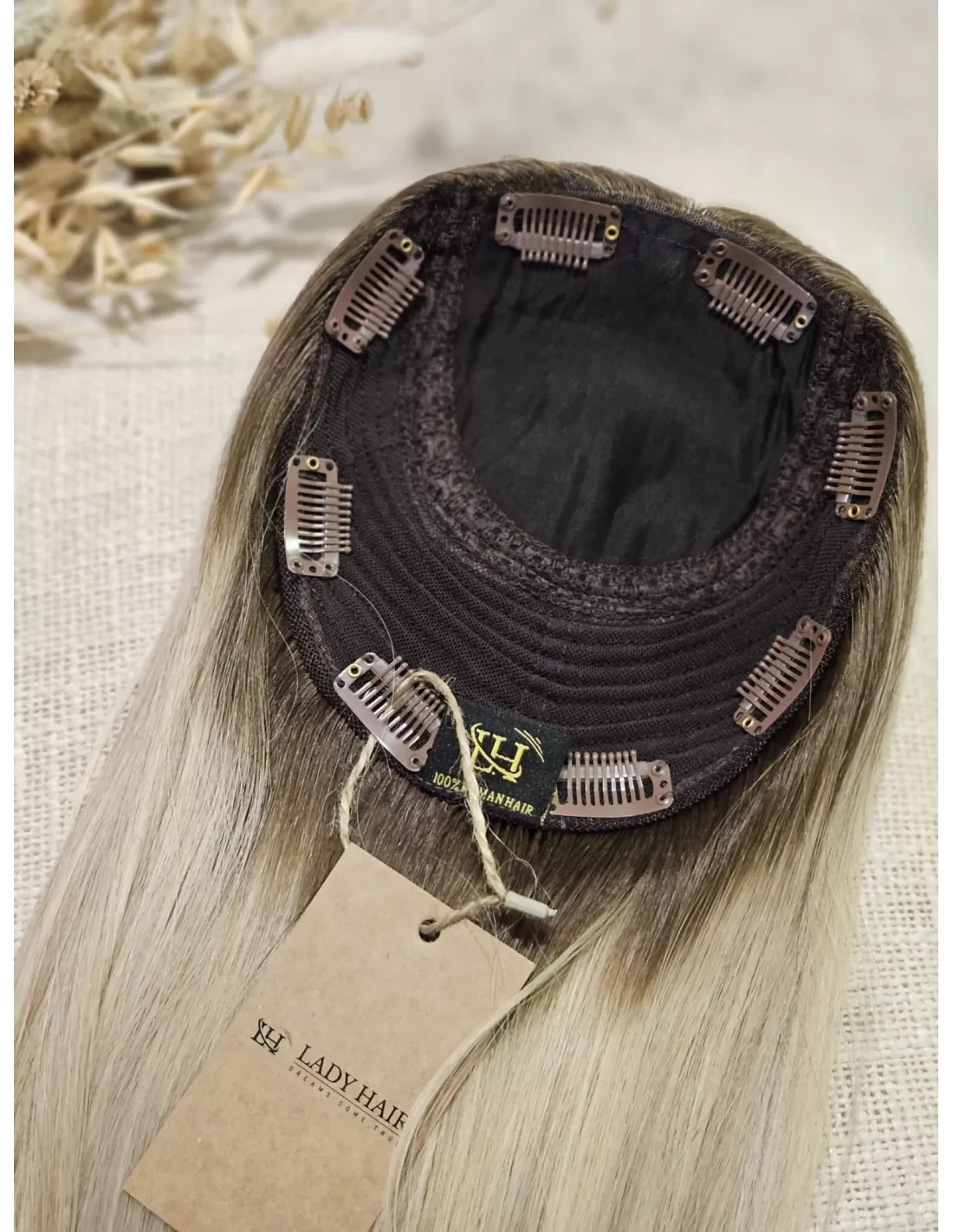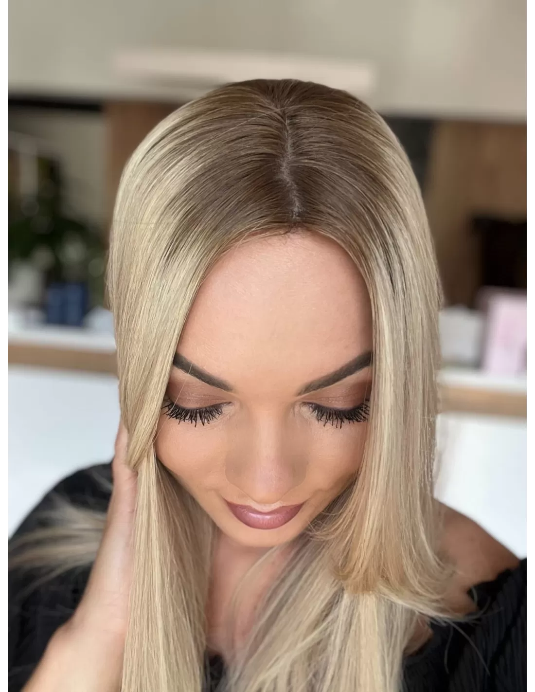 Topper Soa to niezwykła eksplozja naturalnego piękna, stworzona z najwyższej jakości włosów. Jego blond kryje w sobie subtelną magię beżowego baleyage, która dodaje fryzurze delikatnego oświetlenia. Odrost w chłodnym odcieniu ciemnego blondu to nie tylko kontrast, ale także wyraz elegancji.