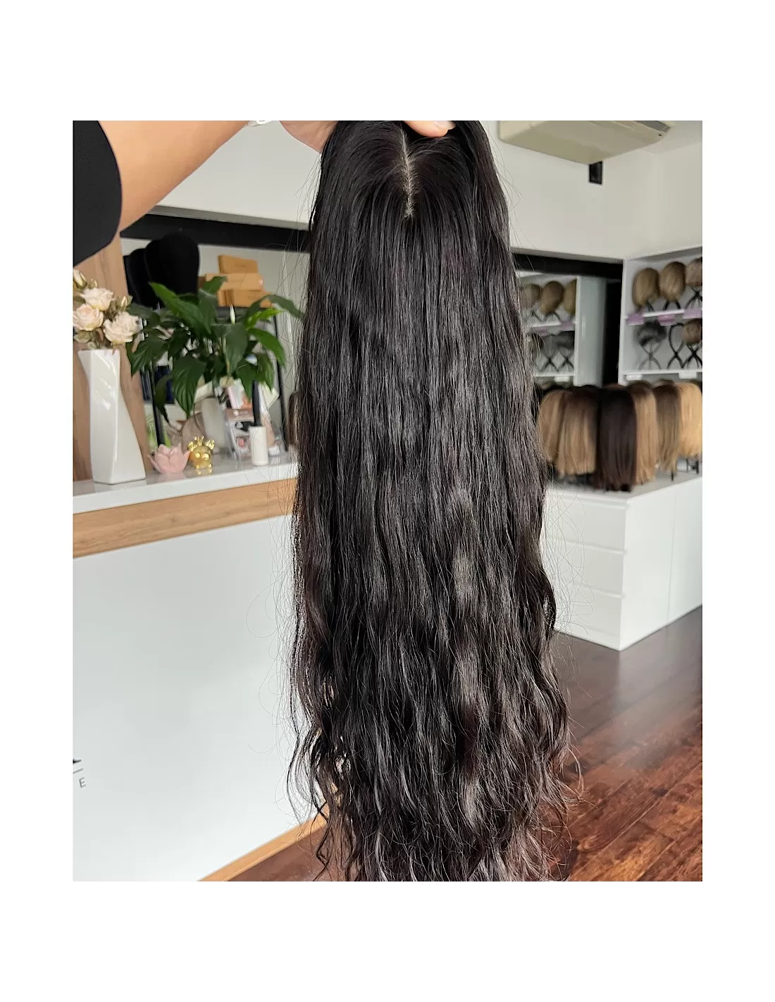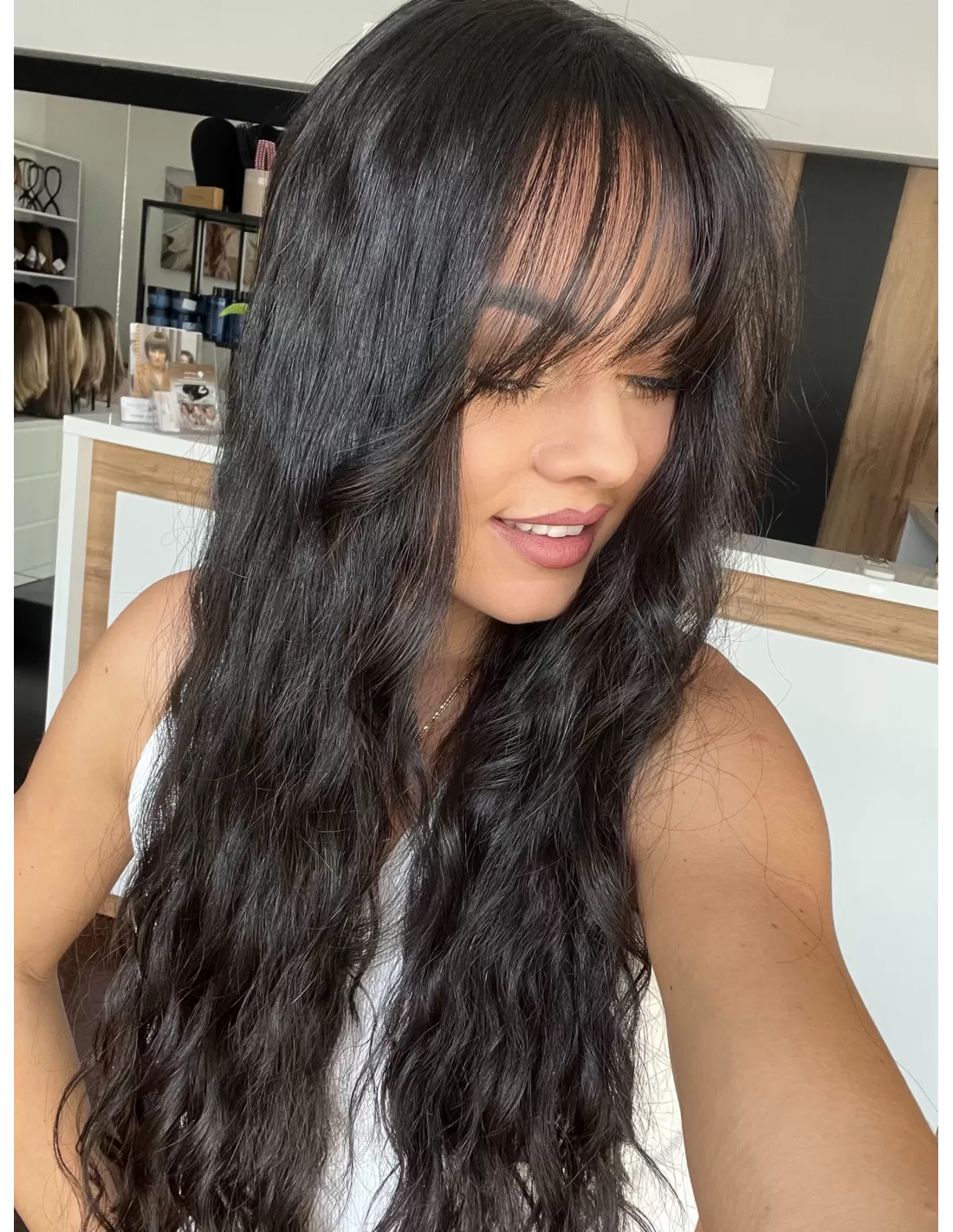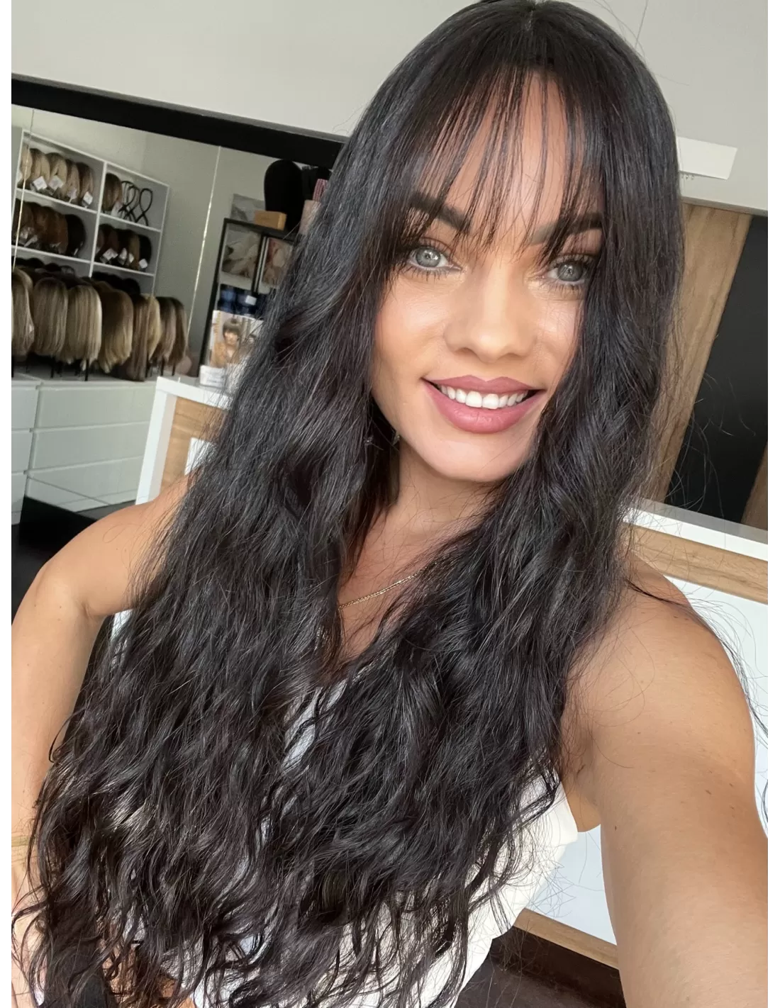 Lady HairTopper INA wykonany został z naturalnych włosów europejskich o teksturze falowanej. Jest to idealne rozwiązanie dla tych, którzy pragną stylowego wyglądu z subtelnym urozmaiceniem. Jego miękkie, naturalne krętki dodają objętości i lekkości, podkreślając jednocześnie elegancję. Włosy w kolorze naturalnego bardzo ciemnego brązu nadają całemu lookowi harmonijności, tworząc efektowny kontrast z subtelnymi i uroczymi falami..