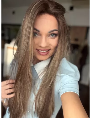 Kolor peruki :dłuższy odrost w kolorze średniego brązu, który płynnie przechodzi w stylowy balejaż. Długość peruki zdobią misternie przeplecione pasemka w odcieniach jasnego blondu i ciepłego brązu. Ta subtelna gra kolorów tworzy trójwymiarowy efekt głębi, nadając fryzurze wyjątkowego charakteru. To doskonały wybór dla tych, którzy pragną oryginalności i naturalności w jednym. Elastyczny czepek i możliwość regulacji zapewniają idealne dopasowanie do kształtu głowy .