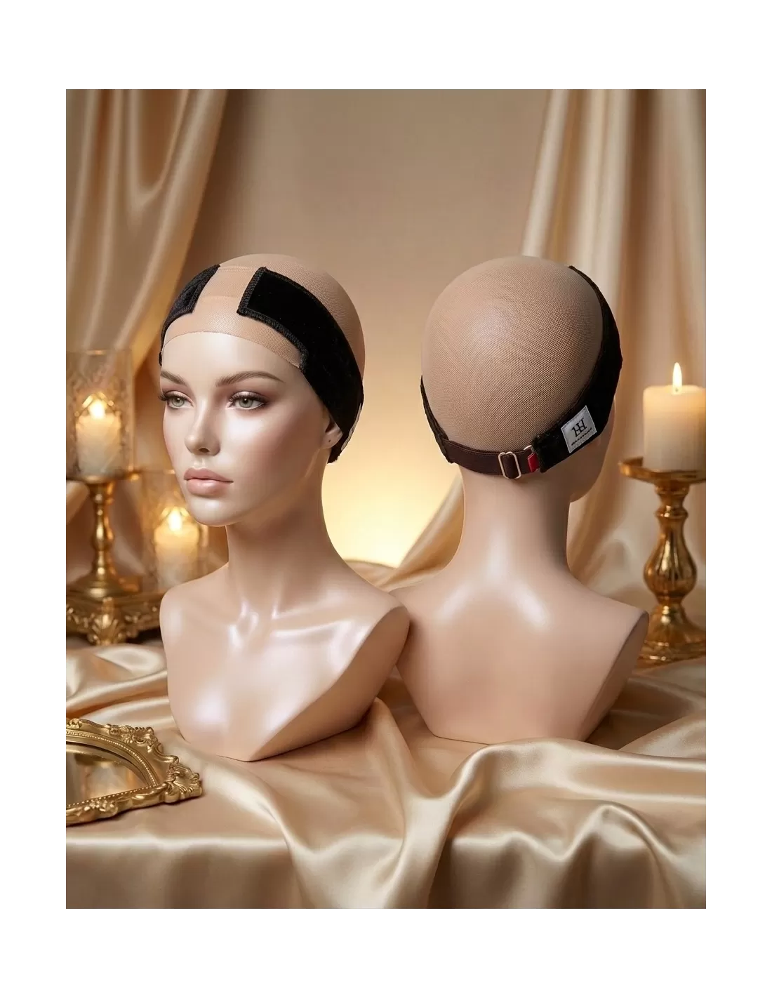 Specjalistyczna opaska zaprojektowana z myślą o perukach typu lace front. Jej wyjątkowa konstrukcja łączy miękkie, welurowe wykończenia z transparentną siateczką, dzięki czemu opaska pozostaje całkowicie niewidoczna pod delikatną linią lace front.