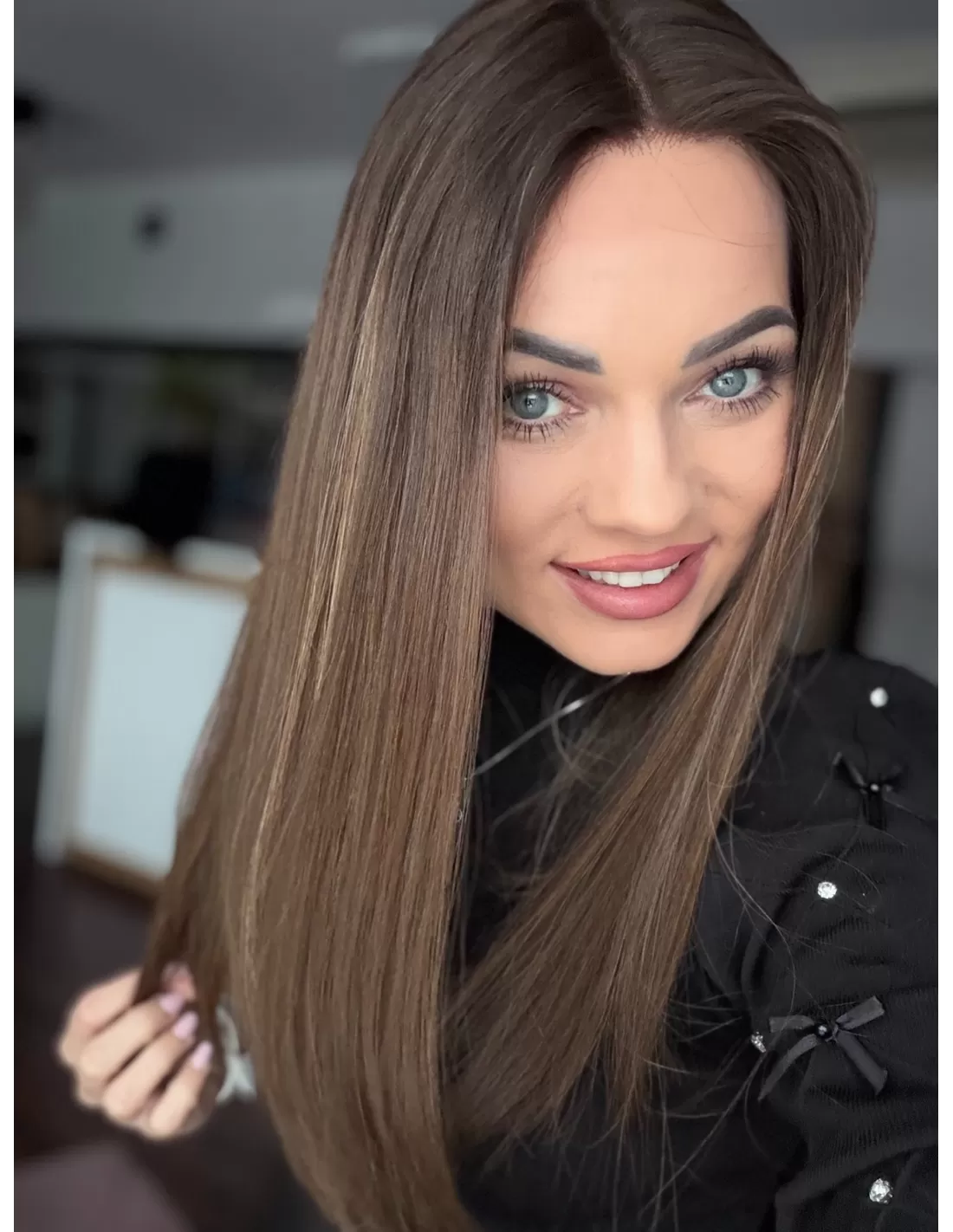 Włosy można dowolnie stylizować. Kręcić prostować, a także zmieniać dowolnie przedziałek.