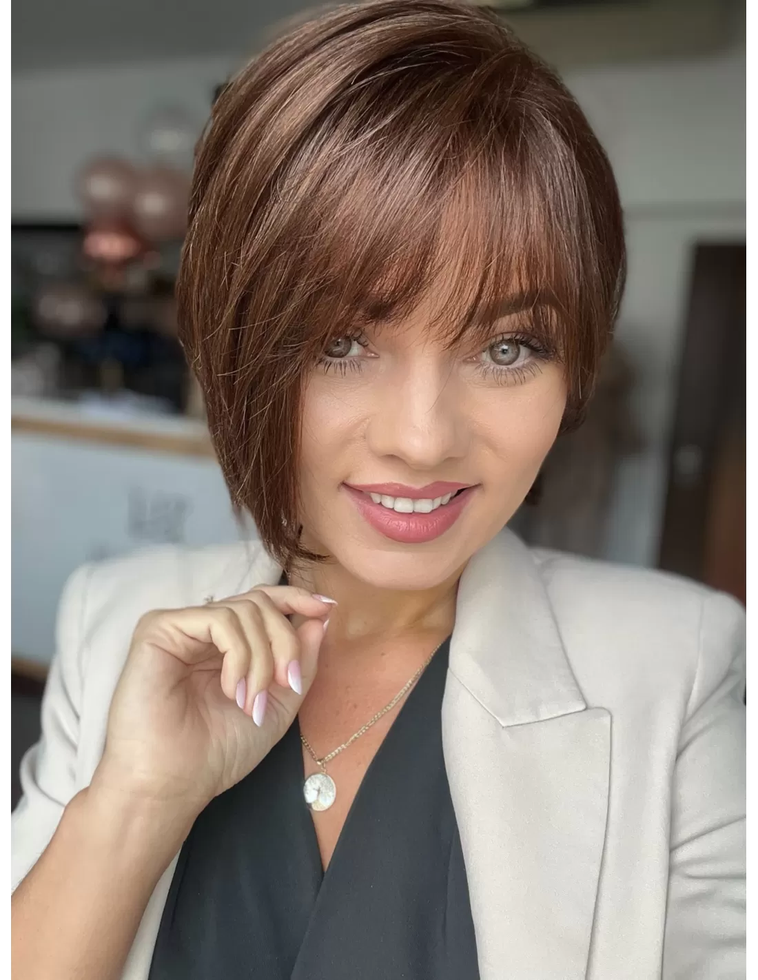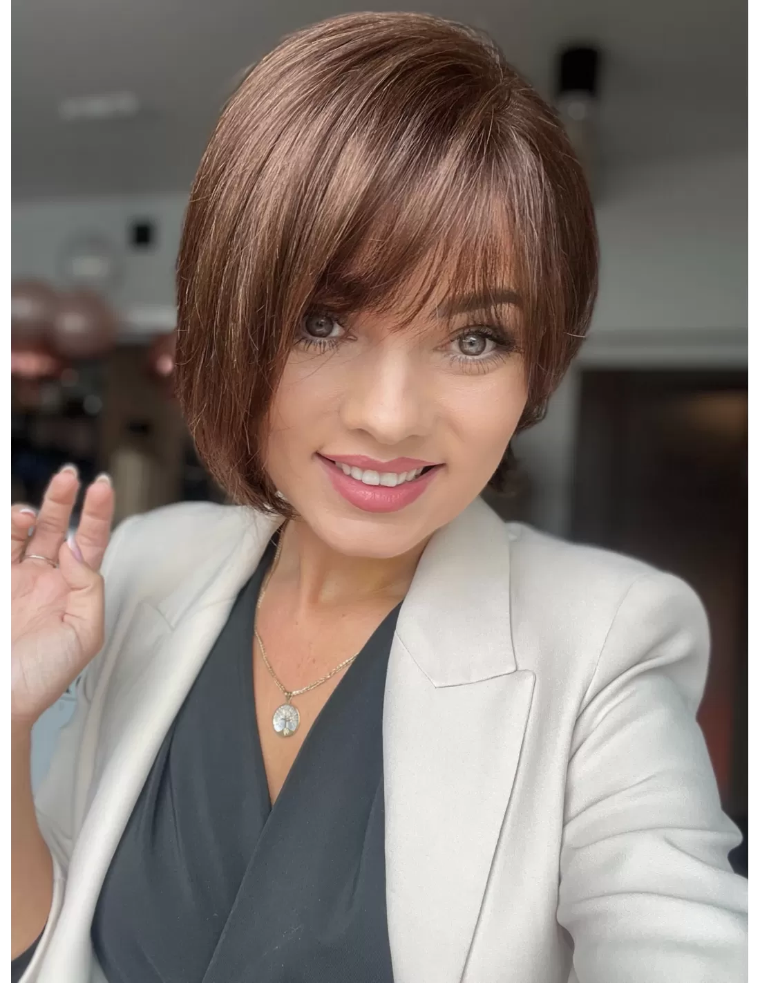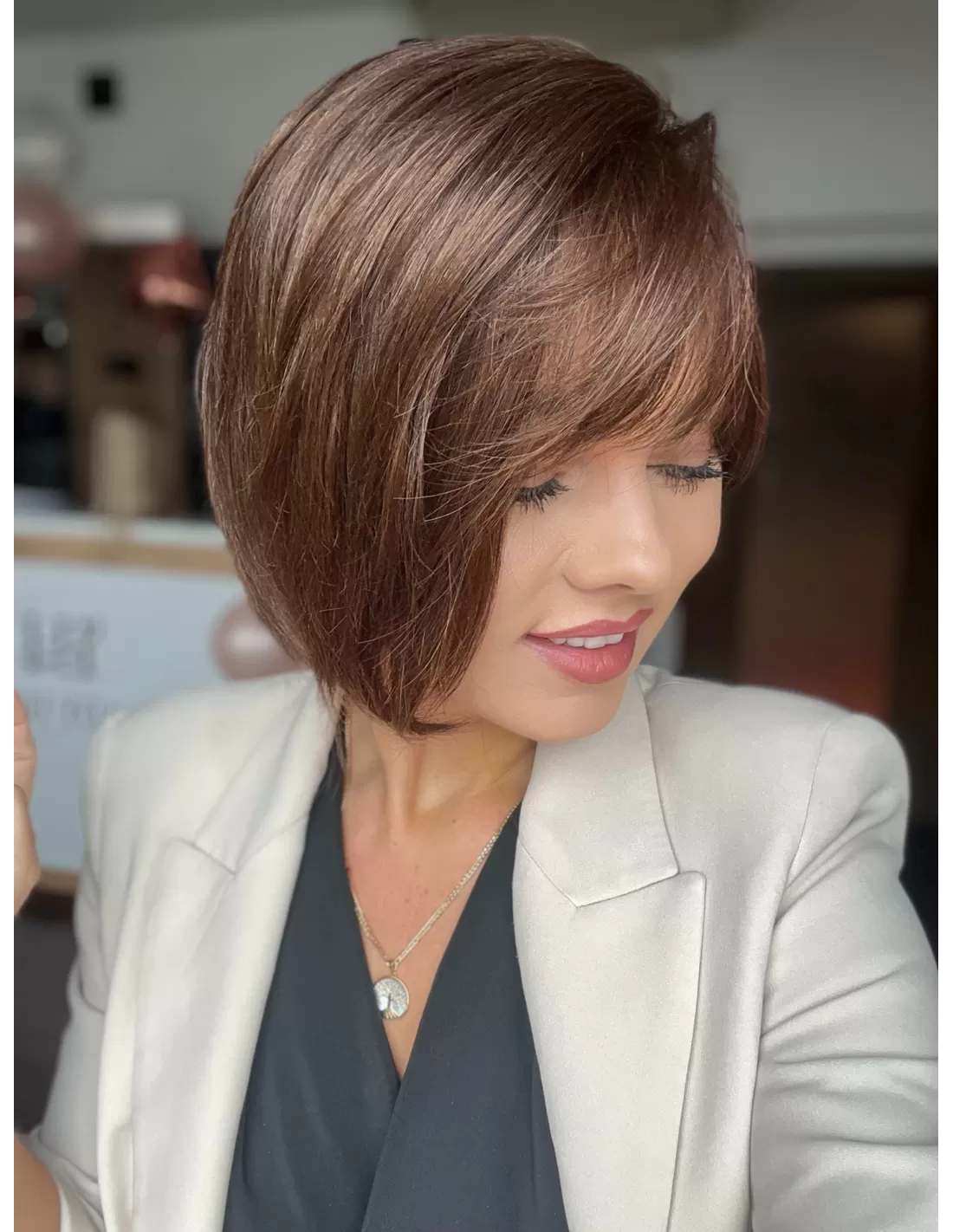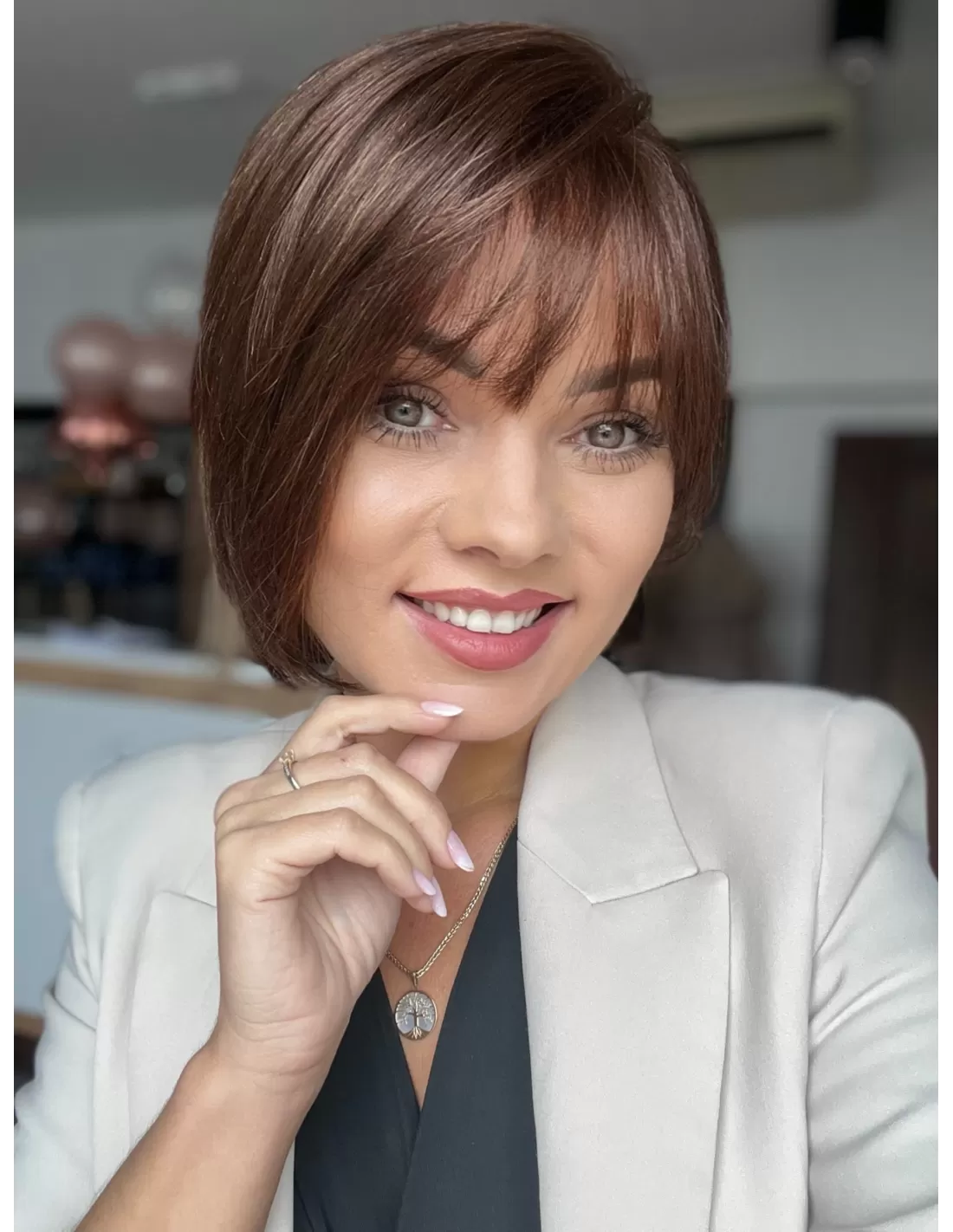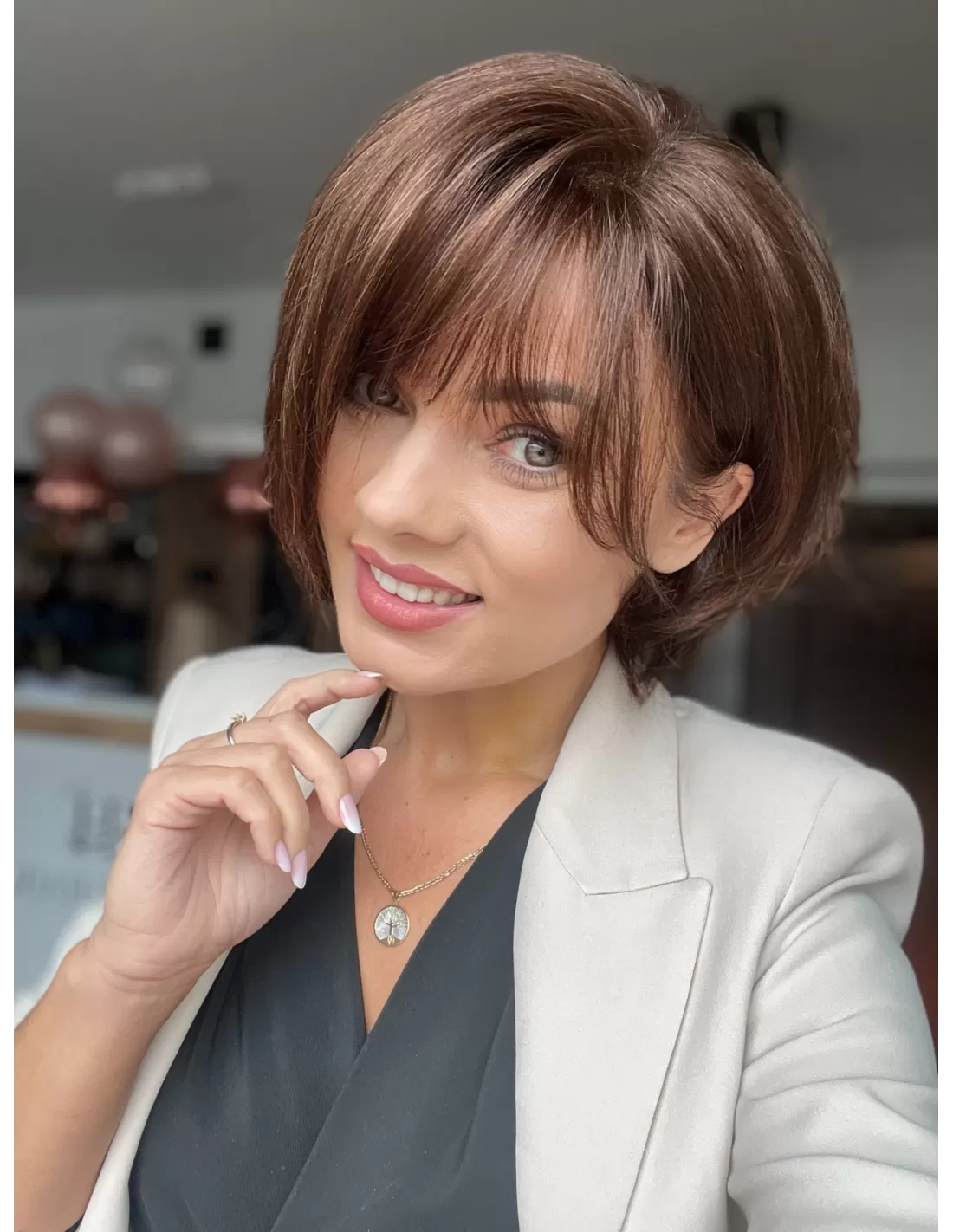 Peruka model Kris brąz to wyjątkowa kompozycja elegancji i komfortu. Wykonana została z włosów naturalnych europejskich. Peruka jest w całości tkana ręcznie , dzięki czemu jest wyjątkowo lekka i komfortowa w noszeniu,