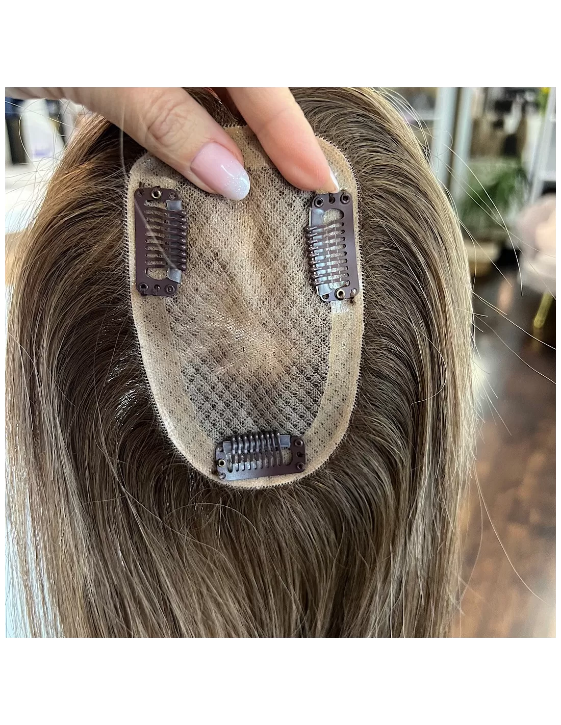 Przedstawiamy mini topper, idealne rozwiązanie dla osób pragnących subtelnie zagęścić przedziałek. Wykonany z naturalnych włosów .