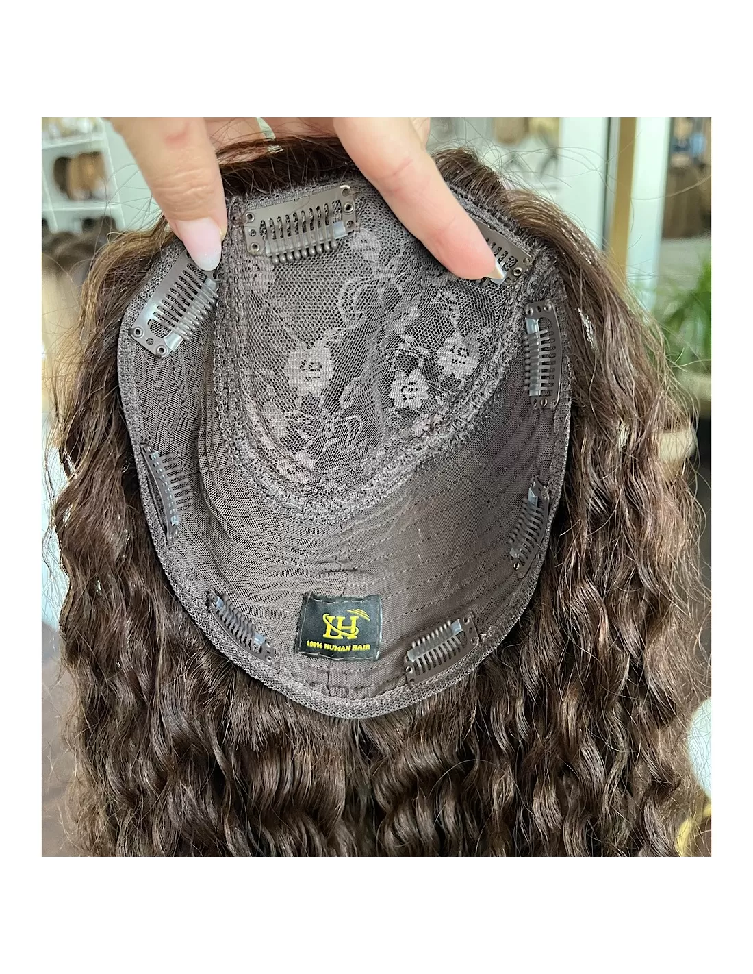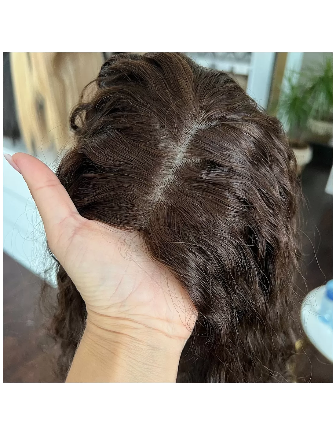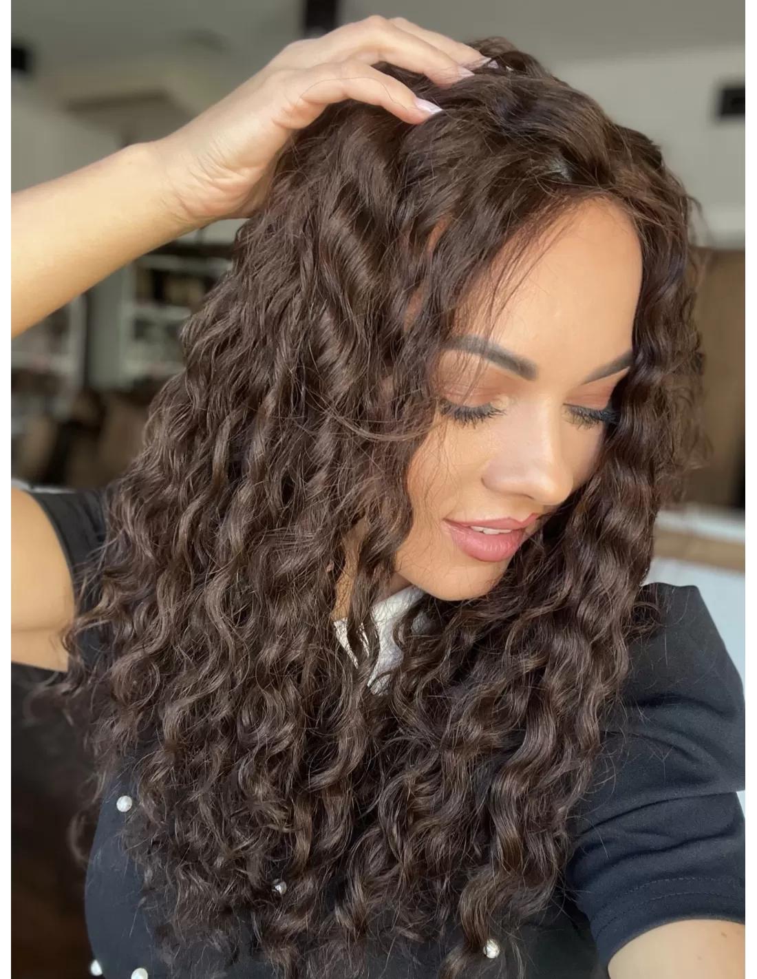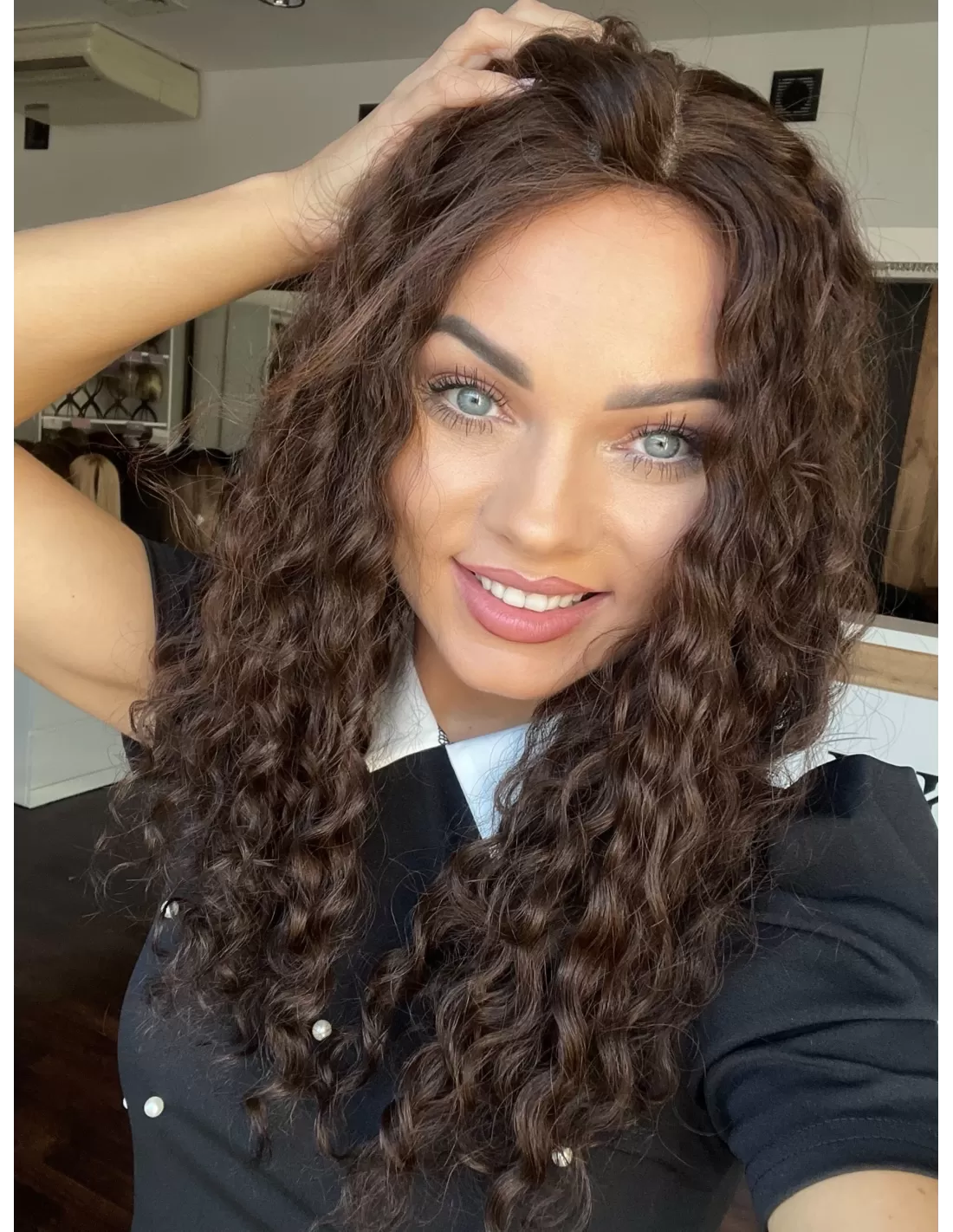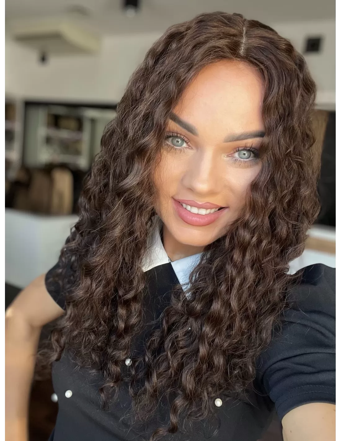 Topper Nila wykonany został z naturalnych włosów europejskich o teksturze kręconej. Jest to idealne rozwiązanie dla tych, którzy pragną stylowego wyglądu z subtelnym urozmaiceniem. Jego miękkie e krętki dodają objętości i lekkości, podkreślając jednocześnie elegancję. Włosy w kolorze naturalnego ciemnego brązu w ciepłym odcieniu nadają całemu lookowi harmonijności, tworząc efektowny kontrast z subtelnymi i uroczymi loczkami..