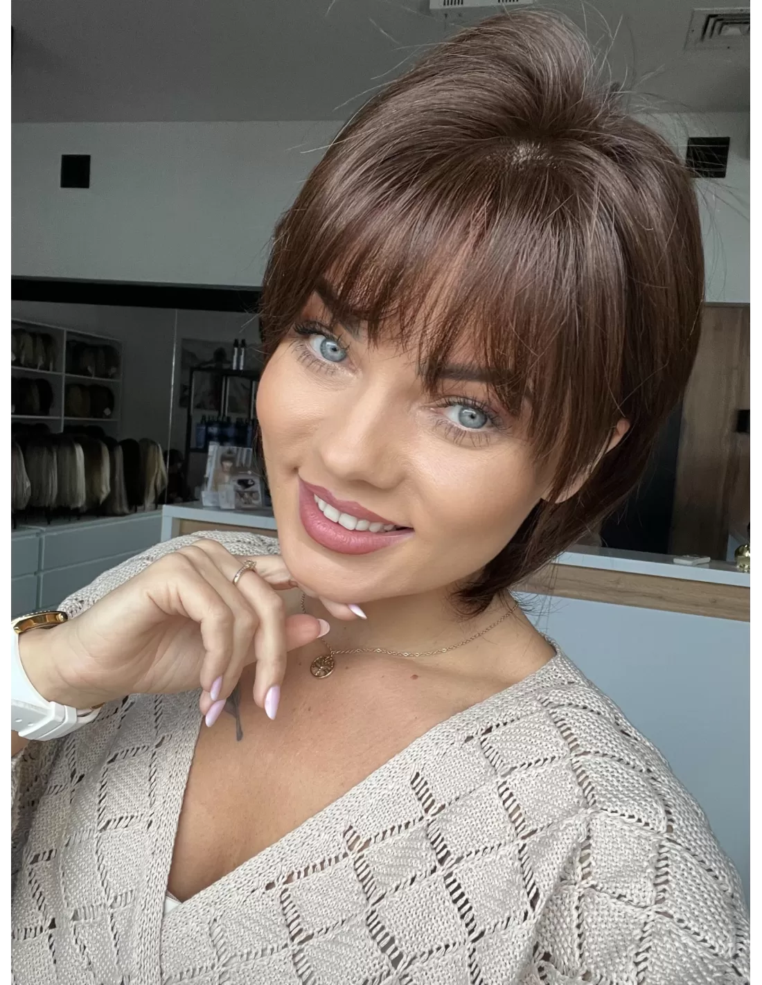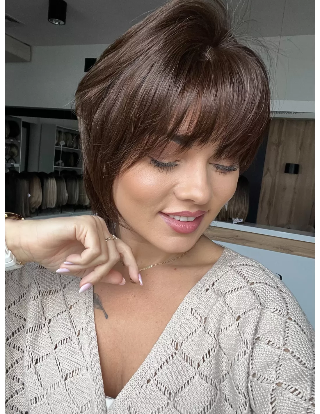 Elastyczny tył zapewnia idealne dopasowanie, a regulacje umożliwiają dostosowanie do indywidualnych preferencji. Kolor czekoladowy ciepły brąz nadaje peruce wyrafinowanego charakteru, podkreślając jej elegancję., idealna dla pań ceniących wygodę i krótkie fryzury. Peruka Ila to doskonały wybór dla tych Pań , które pragną zachować styl i elegancję w prosty sposób.