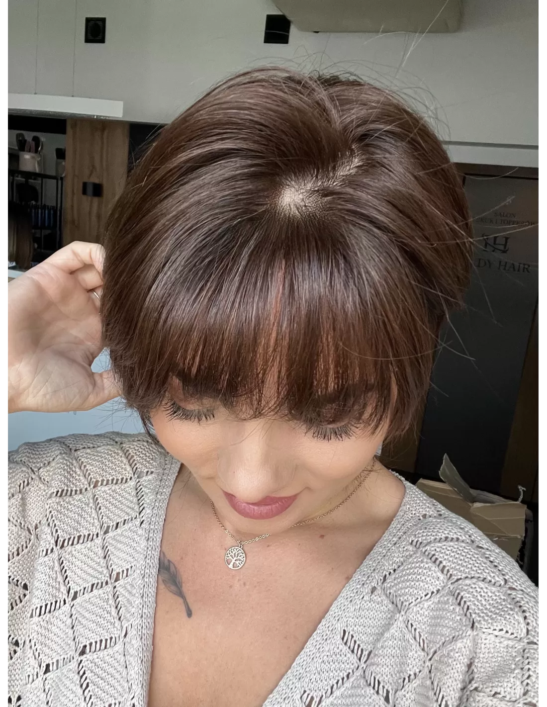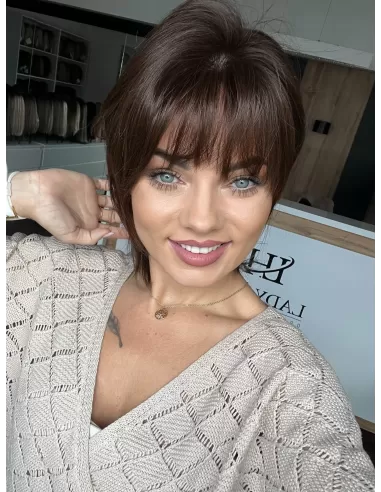 Ila K2 z grzywką+mikroskóra-Krótka peruka z włosów naturalnych