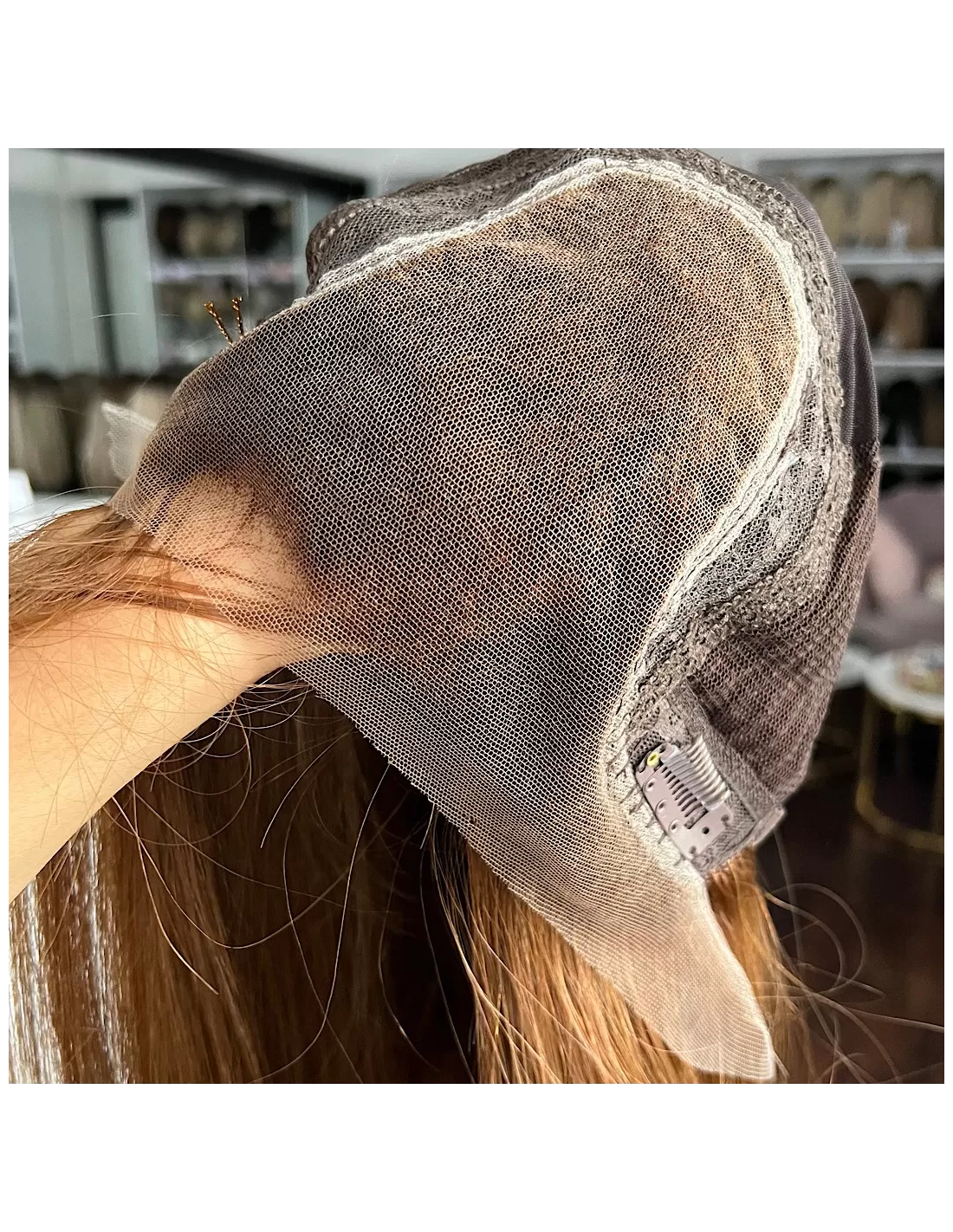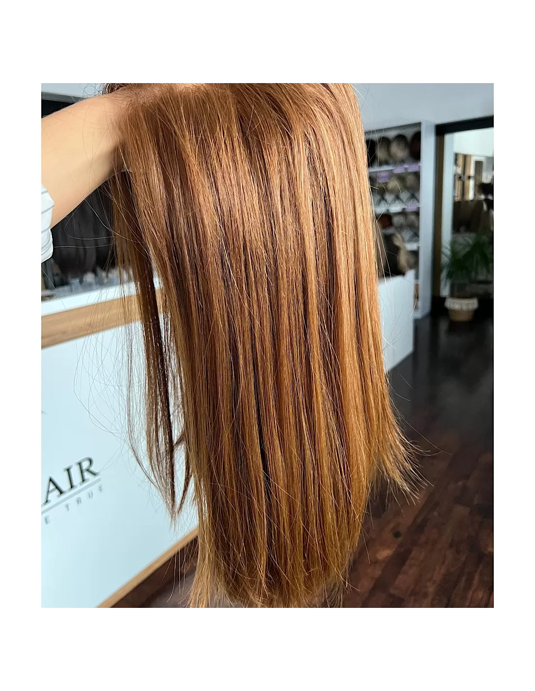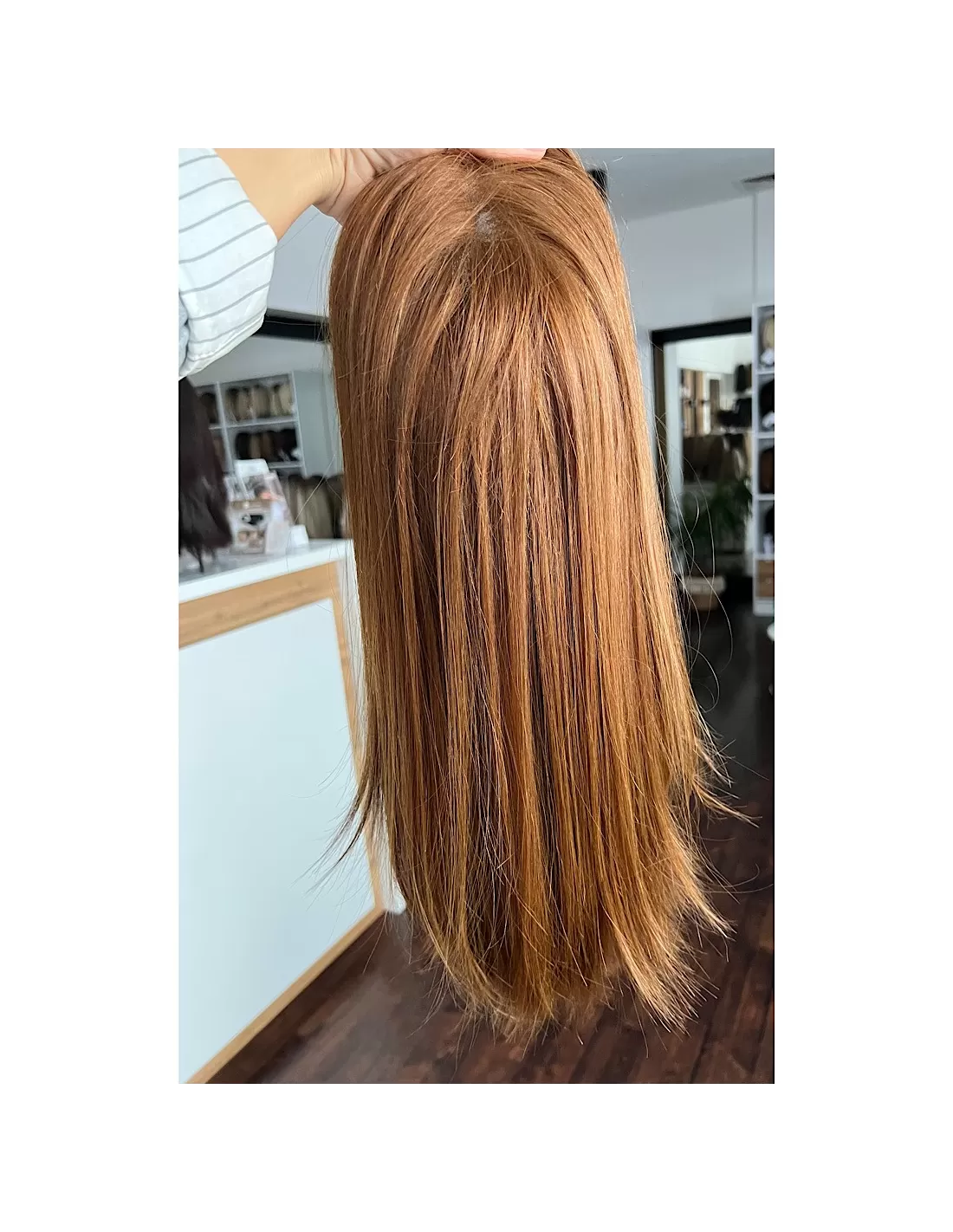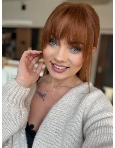 Ta wyjątkowa peruka z włosów naturalnych zachwyca swoim pięknym cynamonowym kolorem..