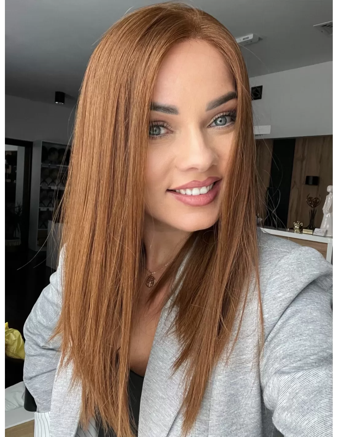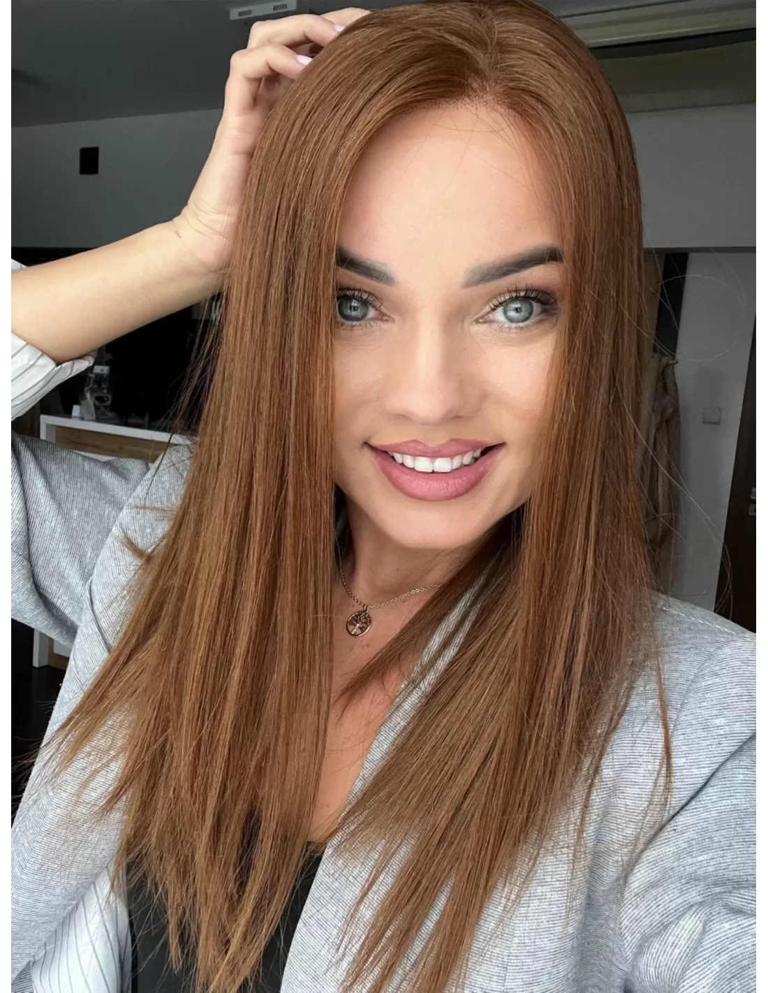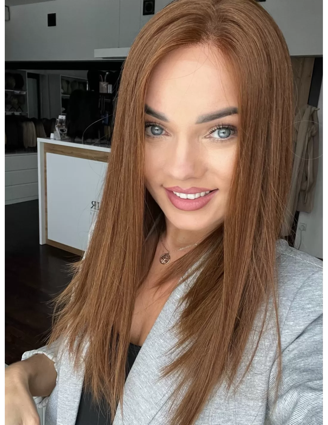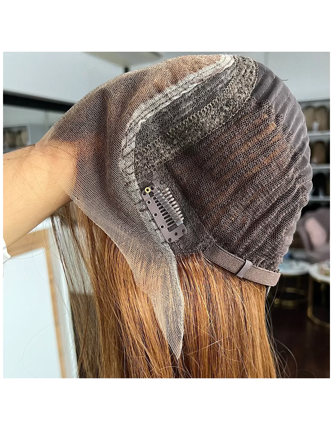 Ta wyjątkowa peruka z włosów naturalnych zachwyca swoim pięknym cynamonowym kolorem..