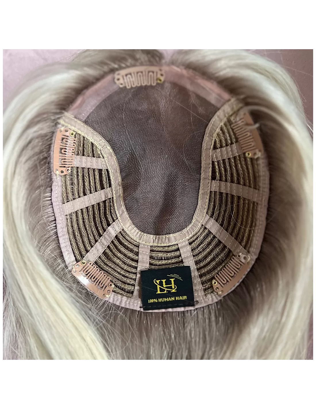 Konstrukcja bazująca na mono: Topper ten wyposażony jest w bazę mono, co oznacza, że włosy są ręcznie tkane do delikatnej siateczki, co zapewnia doskonałe naturalne wykończenie. Mono baza jest niezwykle delikatna dla skóry głowy i zapewnia efekt "scalp-like", co sprawia, że toper jest trudny do odróżnienia od własnych włosów.