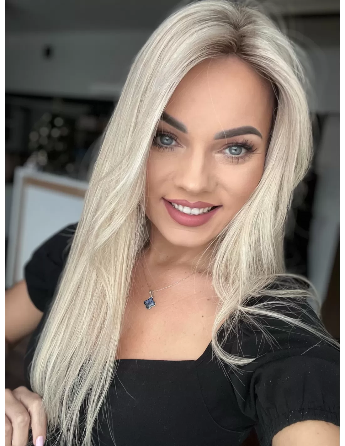 Całość tworzy luksusowy, naturalny blond typu "soft beige blonde", który pięknie rozświetla twarz, wygląda świeżo i bardzo realistycznie-zarówno w dziennym, jak i w sztucznym świetle.