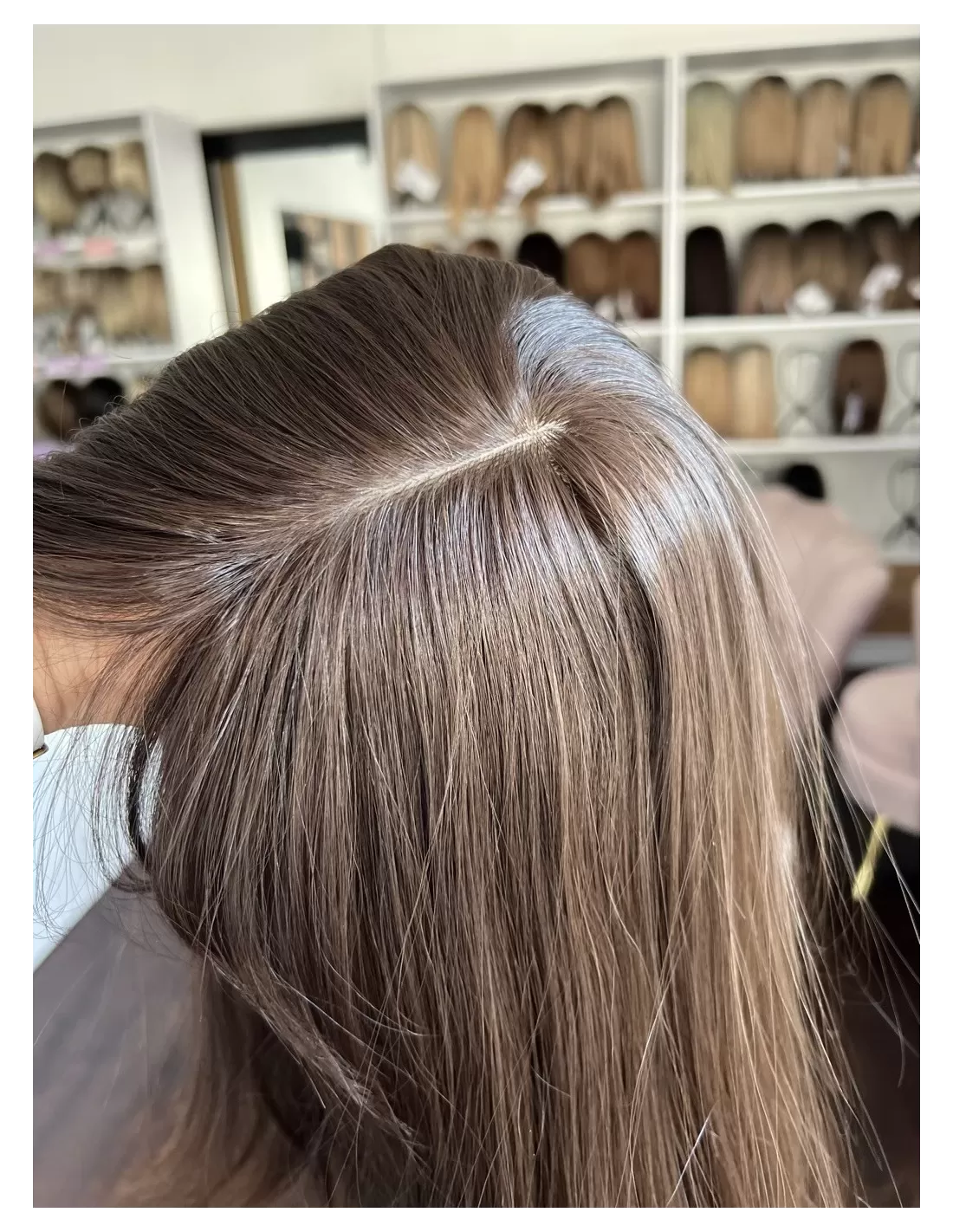 Mikroskóra na czubku peruki dokładnie imituje skórę głowy, co sprawia, że peruka wygląda jeszcze bardziej realistycznie.