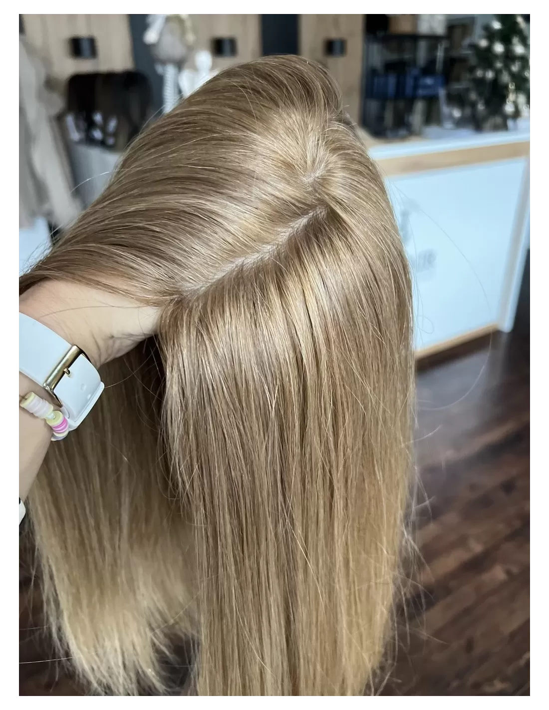 Lady HairTopper Alice wykonany został z najwyższej jakości naturalnych włosów słowiańskich o naturalnym odcieniu blondu. Dzięki temu, nie tylko struktura włosów, ale także kolor są absolutnie zgodne z naturalnym wyglądem. To oznacza, że możesz cieszyć się piękną fryzurą, która jest w pełni spersonalizowana do twojego stylu i koloru włosów. Naturalny blond to odcień, który sprawia, że topper wygląda niezwykle autentycznie, a jednocześnie nadaje ci pewność siebie, wiedząc, że twoja fryzura zawsze prezentuje się doskonale.