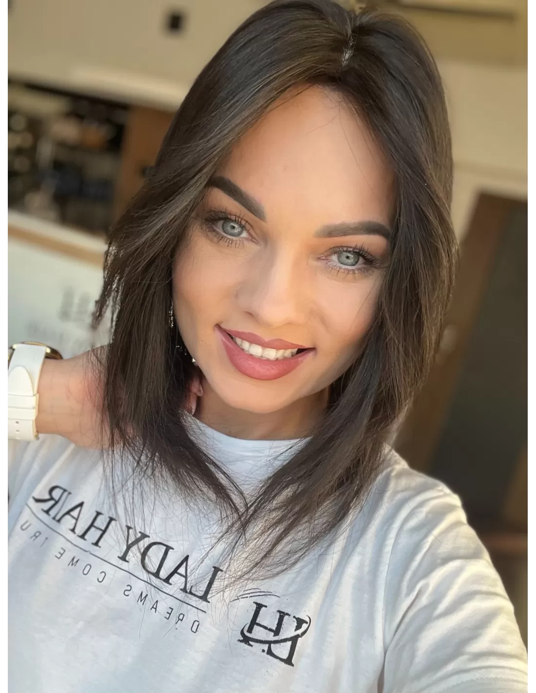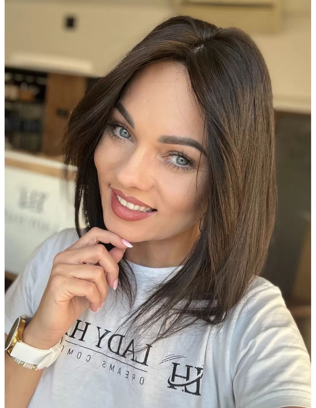 Bardzo ciemny brąz w chłodnym odcieniu –bardzo naturalny, subtelny odcień elegancki i ponadczasowy. Ten kolor został stworzony z myślą o osobach, które pragną świeżego, rozświetlonego wyglądu, a jednocześnie cenią sobie naturalność i harmonię. Bardzo ciemny brąz pięknie komponuje się zarówno z chłodniejszymi, jak i cieplejszymi tonacjami skóry, dodając fryzurze lekkości oraz elegancji.