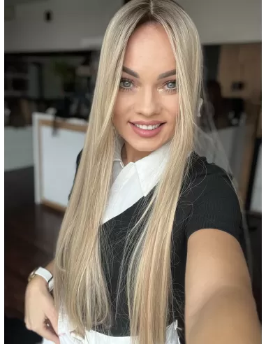 Przedstawiamy wyjątkowy topper, który nie tylko podkreśli Twoją urodę, ale także dostarczy niezapomnianych doświadczeń stylizacyjnych. Wykonany został z najwyższej jakości włosów naturalnych europejskich. Topper Ania w odcieniach pastelowego baleyage blond z odrostem w chłodnym odcieniu średniego blondu to prawdziwa perełka w świecie fryzur.