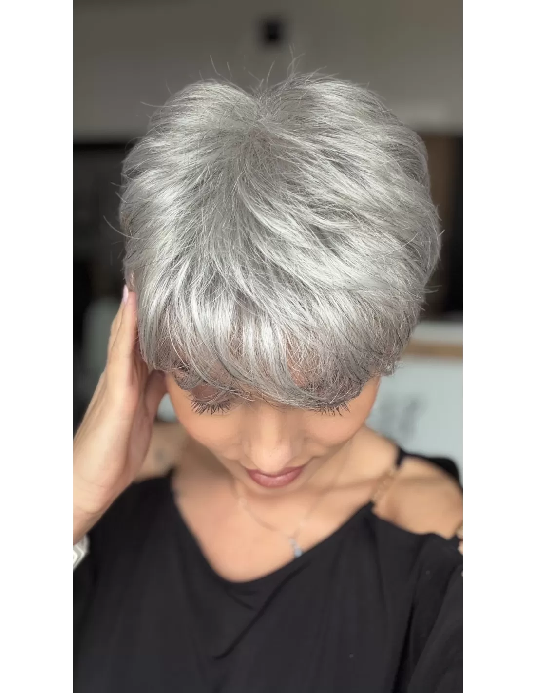 Włosy w peruce są plastyczne dzięki czemu możesz je dowolnie układać i zmieniać przedziałek, tworząc przy tym różnorodne fryzury.