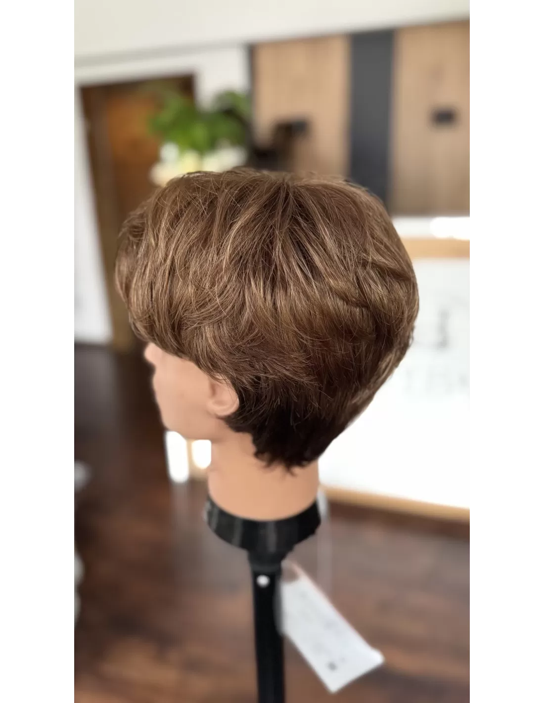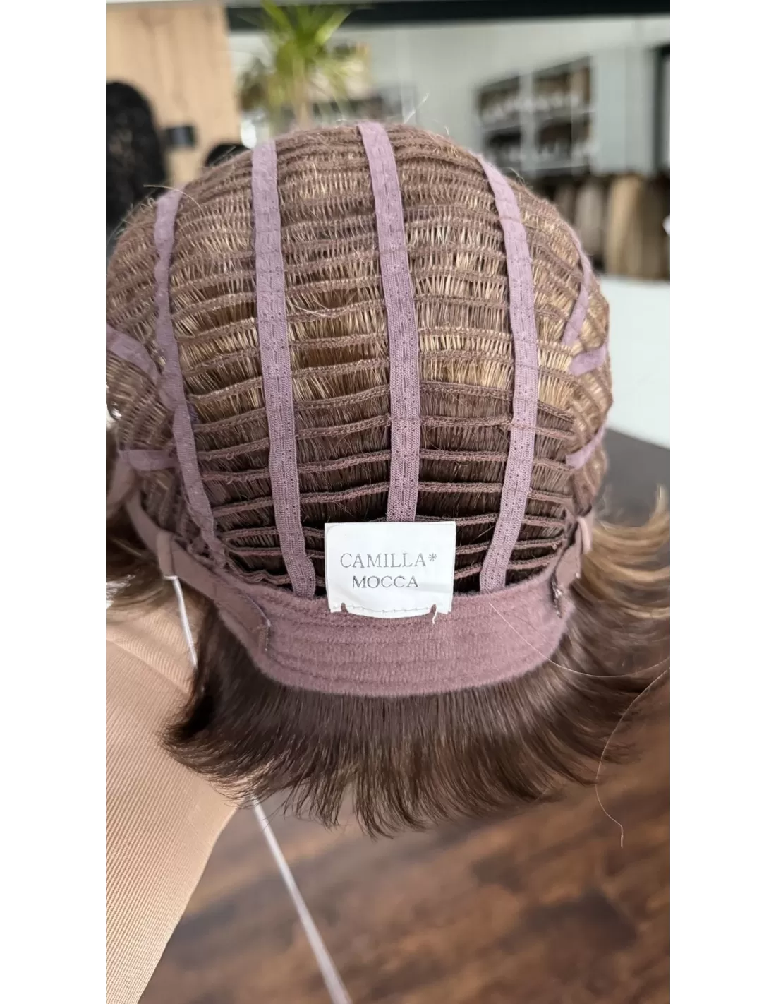 Peruka Camilla to model wykonany w całości maszynowo z włókna syntetycznego najwyższej jakości, które idealnie imituje włosy naturalne. Baza peruki wykonana jest na tresach, co daje dobrą wentylacje głowy.
