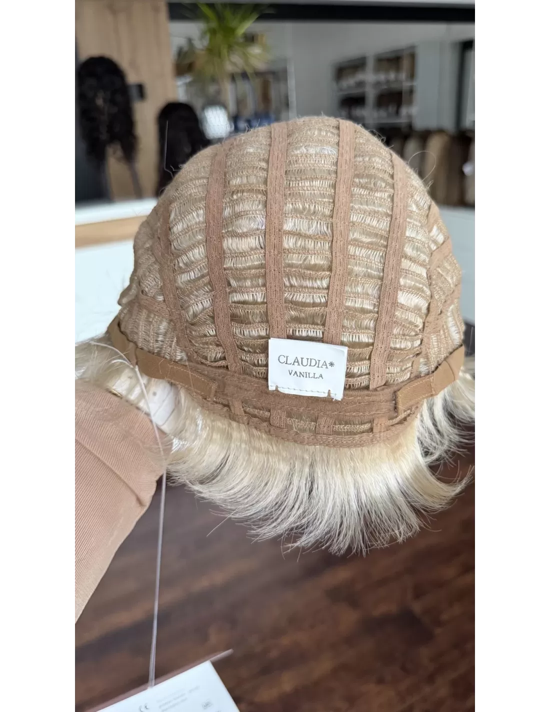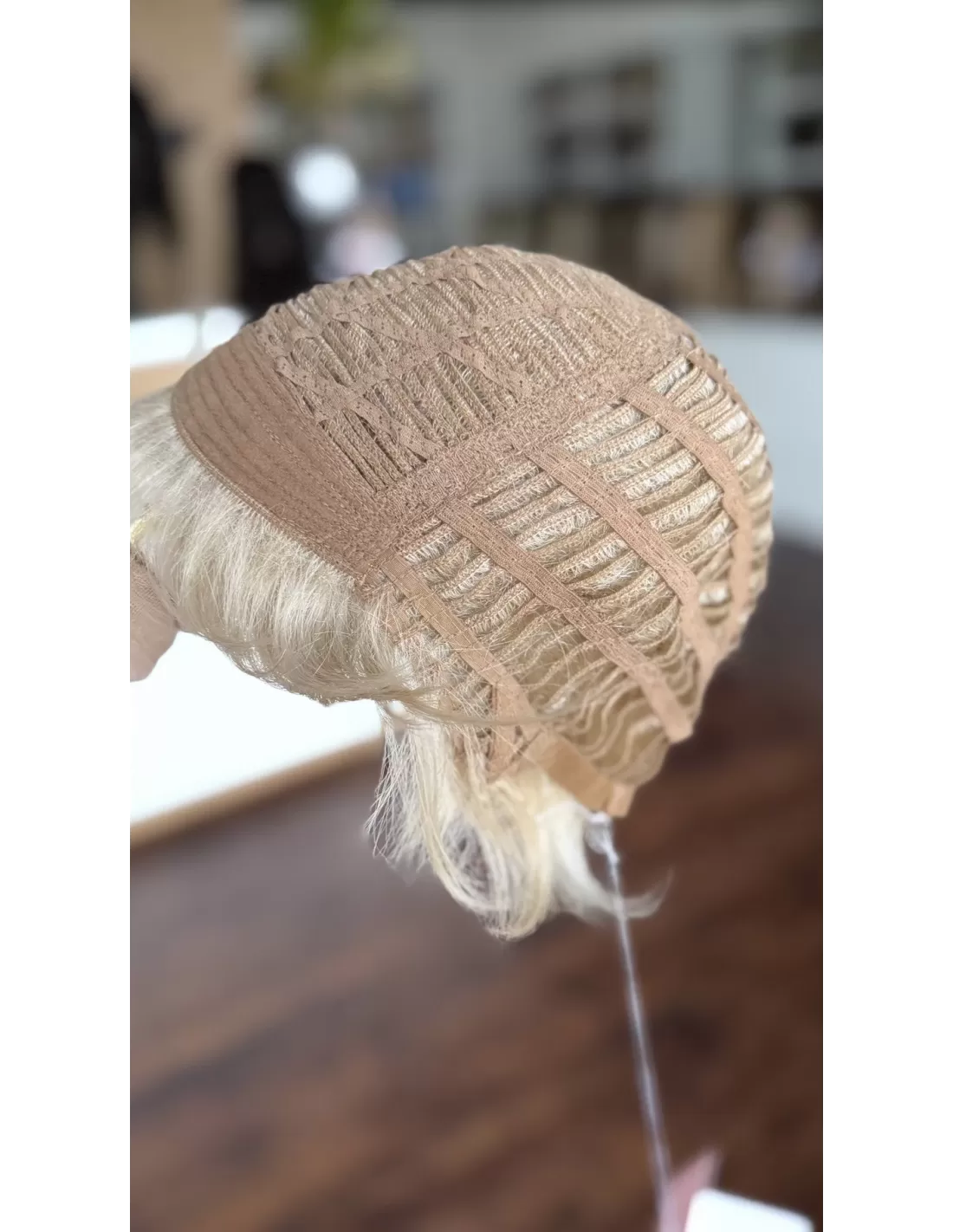 Peruka Claudia to model wykonany w całości maszynowo z włókna syntetycznego najwyższej jakości, które idealnie imituje włosy naturalne. Baza peruki wykonana jest na tresach, co daje dobrą wentylacje głowy.