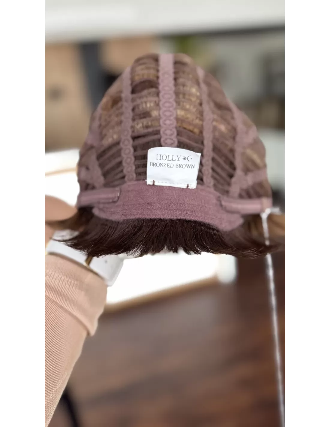Włosy na bazie, z której wykonana jest peruka, tkane są w taki sposób, żeby była ona niewidoczna.