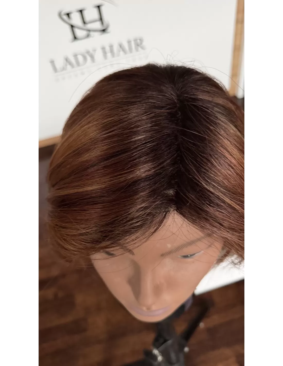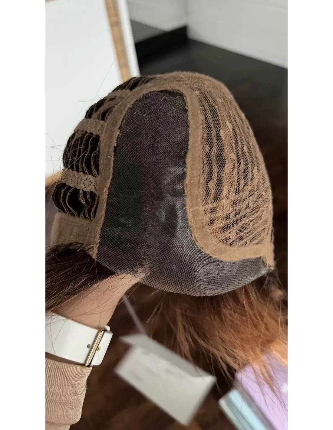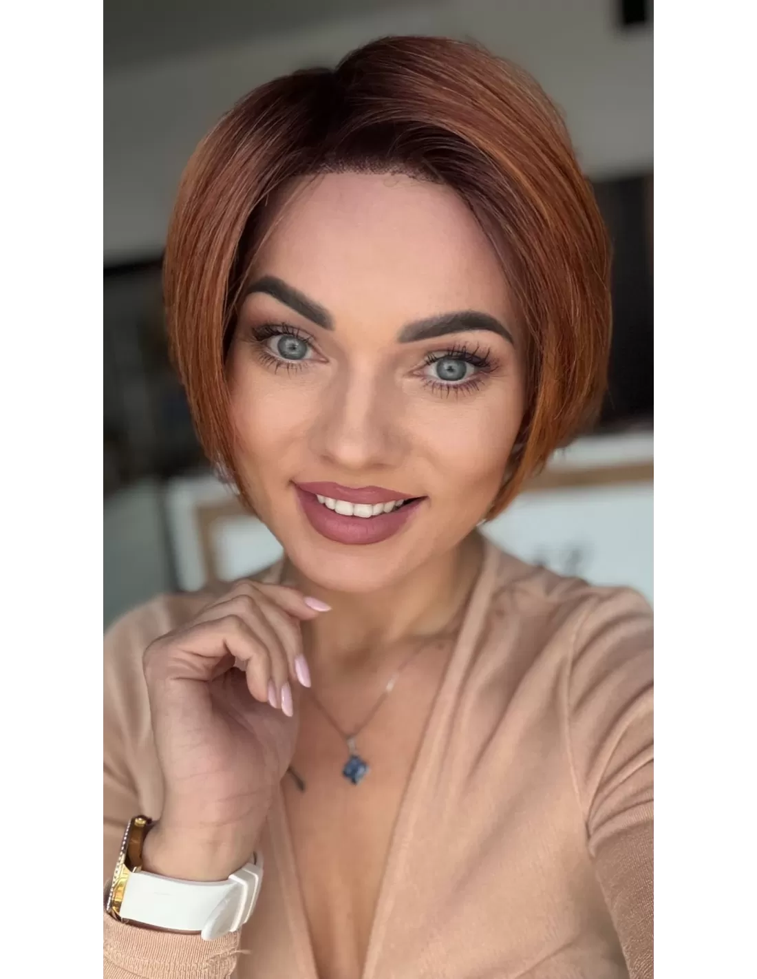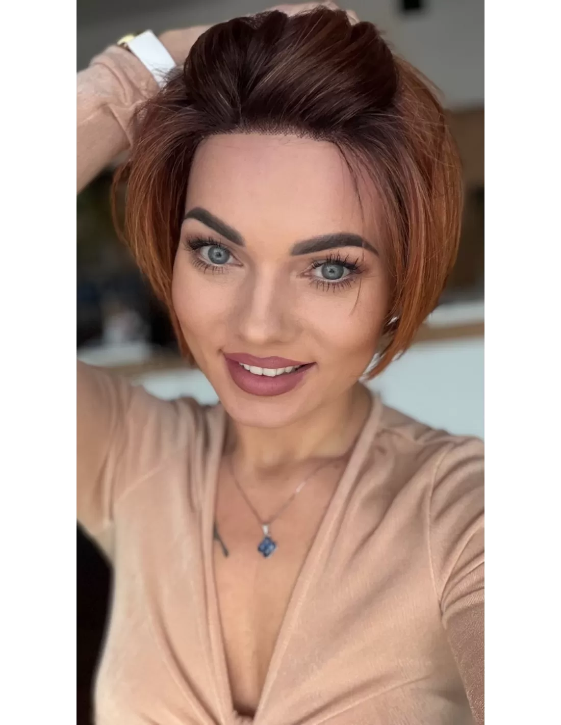 Peruka ma wszyty delikatny element mikroskóry na linii grzywki, który jest tkany ręcznie zgodnie z kątem wyrastania włosów. Peruka z rozmytą linią grzywki pozwala na stylizacje z odkrytym czołem.