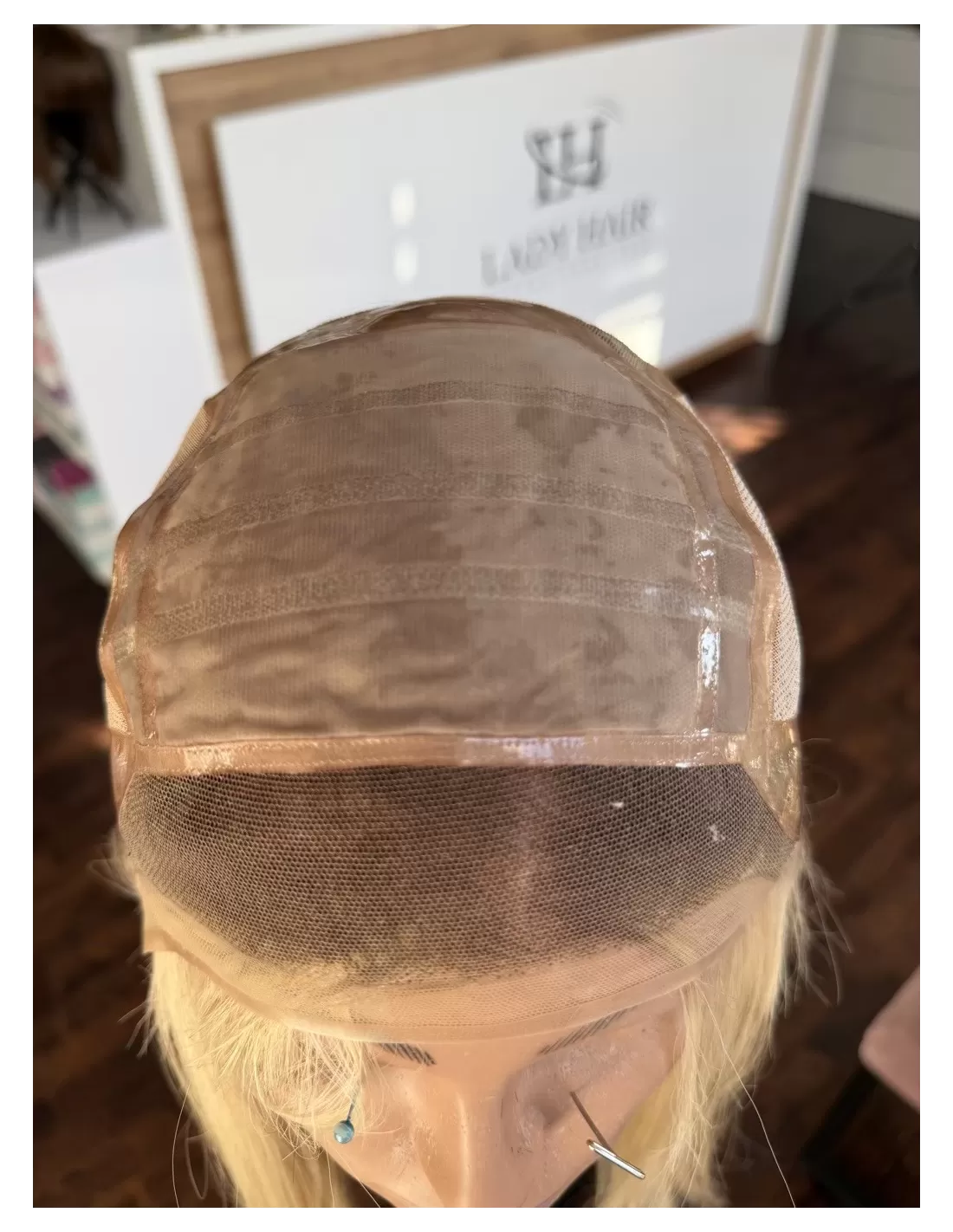 Peruka posiada specjalne wkładki silikonowe umożliwiające bezpieczne podklejenie do skóry głowy, co zapewnia stabilność nawet przy całkowitym braku włosów. Takie rozwiązanie szczególnie polecane jest osobom po chemioterapii, z alopecją lub innymi problemami powodującymi utratę włosów. Model można również nosić bez użycia kleju, w zależności od indywidualnych potrzeb.