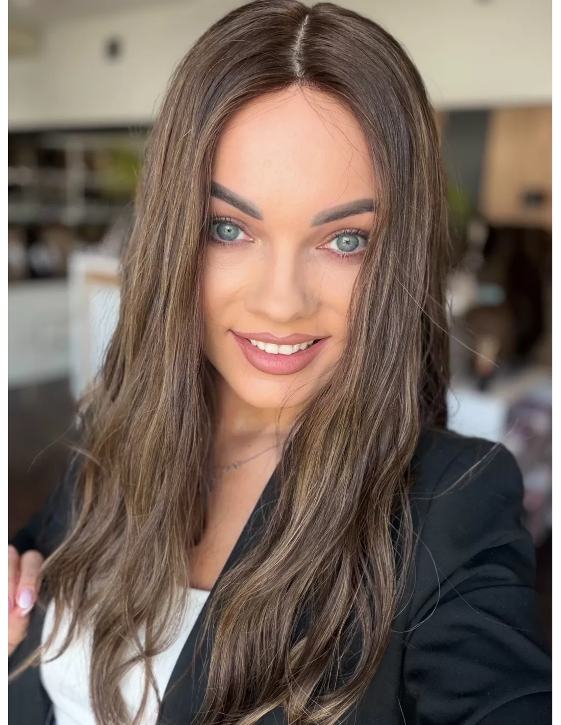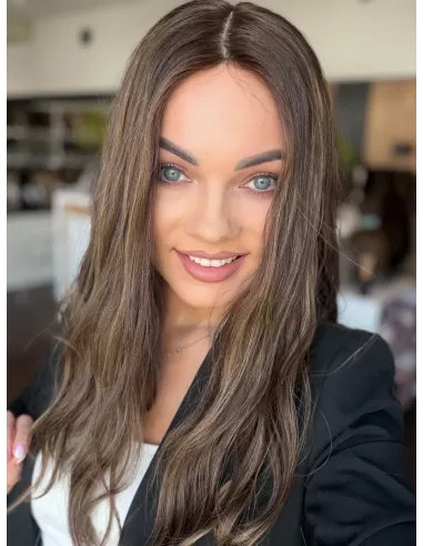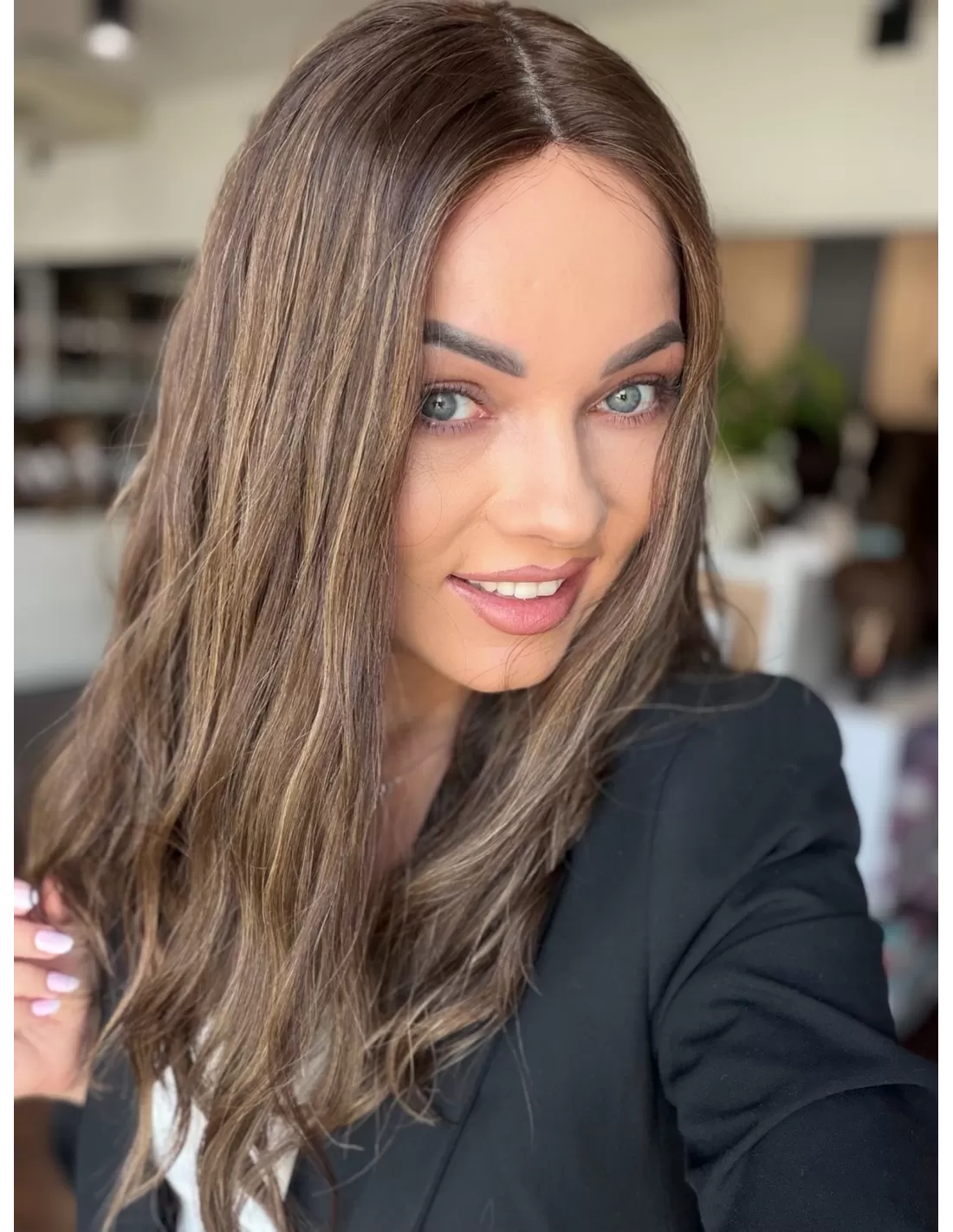 Peruka „SIA” to elegancki model wykonany z najwyższej jakości włosów naturalnych europejskich, utrzymanych w głębokiej, czekoladowej kolorystyce. Falowana struktura włosów nadaje fryzurze naturalnej lekkości, miękkości i swobodnego ruchu, dzięki czemu peruka wygląda niezwykle naturalnie i świeżo.