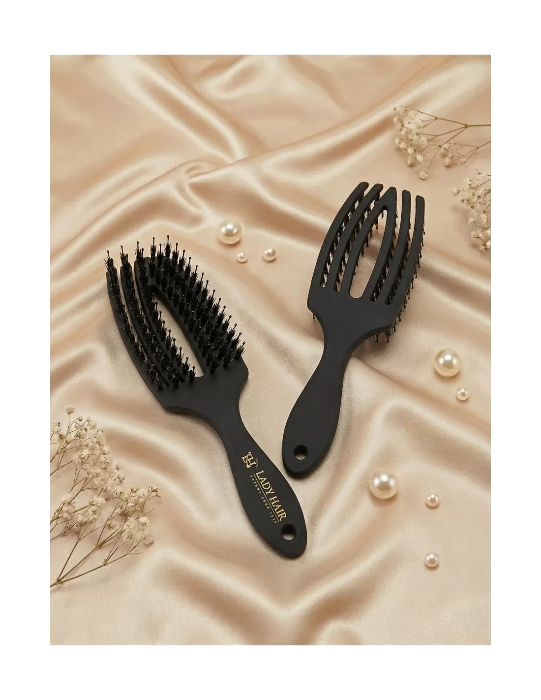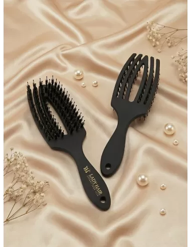Lady HairCzarna szczotka Lady Hair z włosiem dzika to doskonałe narzędzie do pielęgnacji peruk i topperów z włosów naturalnych.